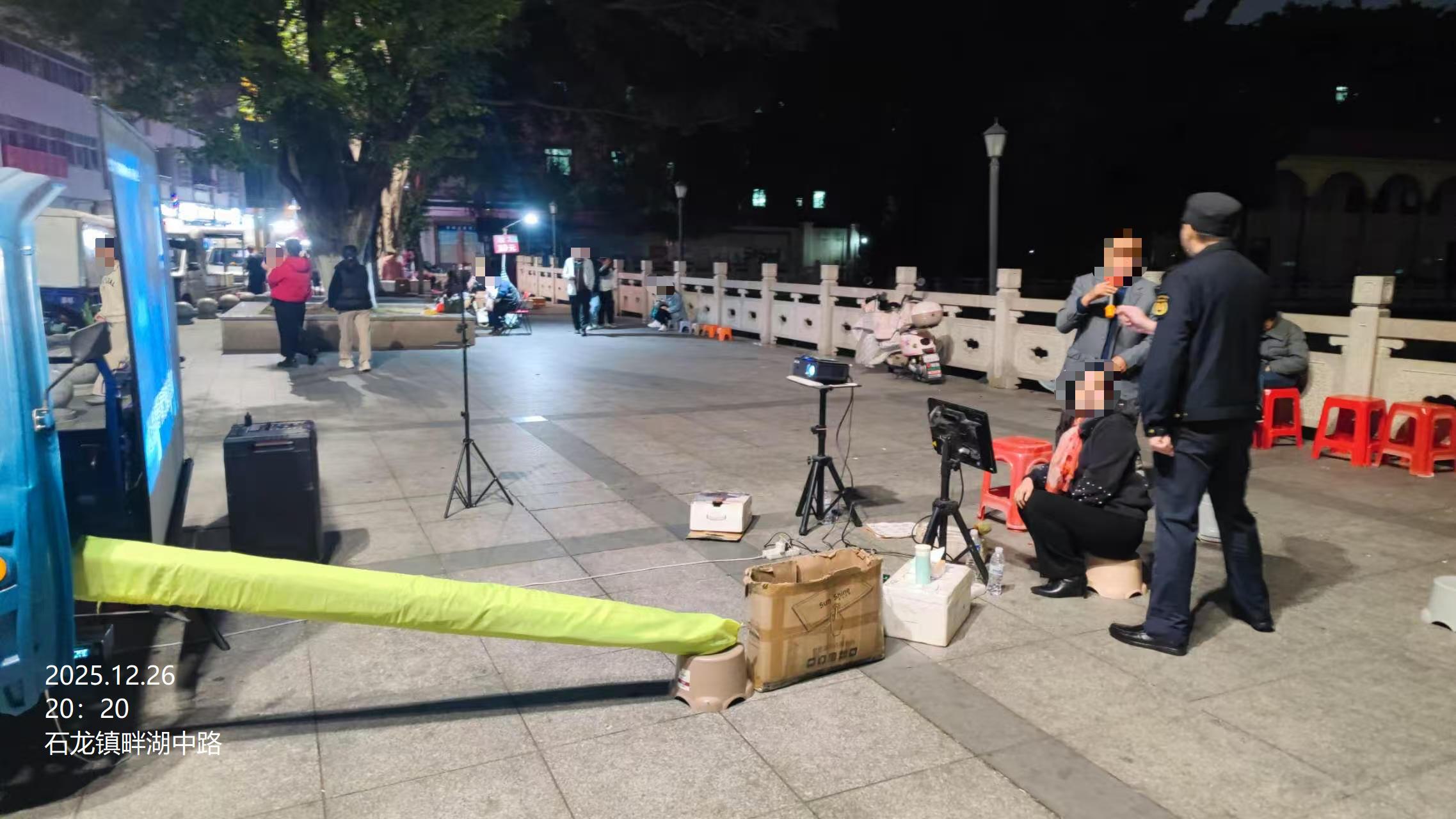 尊敬的市民,您好!您反映的问题已收悉,东莞市城市管理和综合执法局石龙分局经调查核实相关情况,现回复如下:我分局工作人员根据市民反映的情况到达西湖社区公园对面现场调查。工作人员对现场参加活动的市民进行教育劝导,要求其注意控制音量,避免影响其他市民。经劝导参加活动市民随后将音量降低。接下来,我分局将加强不定时巡查工作及市民的宣传教育。感谢您对我们工作的理解和支持!