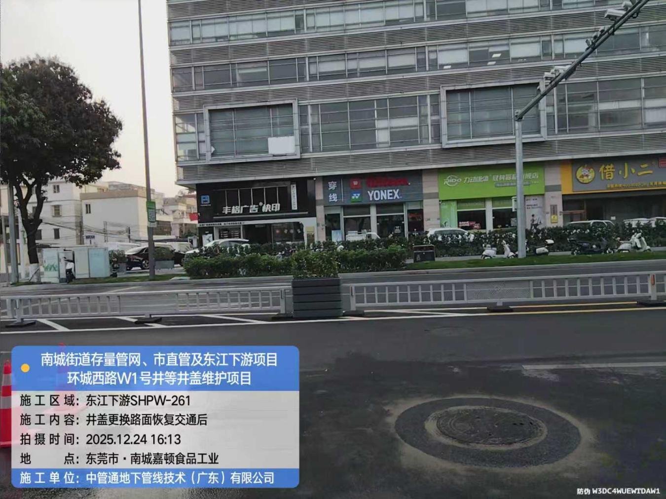 尊敬的市民,您好!您反映的问题已收悉,现回复如下:收到反映的情况后,我们于2025年12月31日19:45电话与您取得联系,并对诉求进行办理。 经核实,您反映的位置因井盖出现破损,东莞市水务环境投资控股集团管网有限公司(下称“管网公司”)于2025年12月24日开展井盖更换作业,该施工已报东莞市公安局交通管理支队南城大队(下称“交管南城大队”)审批同意,并按照交管南城大队要求规范设置施工围挡,工作人员已于当天完成井盖更换并撤离围挡,现场已恢复正常通行。对此给您带来的不便,敬请谅解。 下来,管网公司将进一步优化安排施工时段,尽量避免出行高峰时间段开展施工,持续做好文明施工规范落实、施工标识清晰设置等相关工作。 2025年12月31日,工作人员联系您告知上述情况。如有疑问,欢迎致电水务环境集团24小时客服热线96968,感谢您对我们工作的理解与支持!