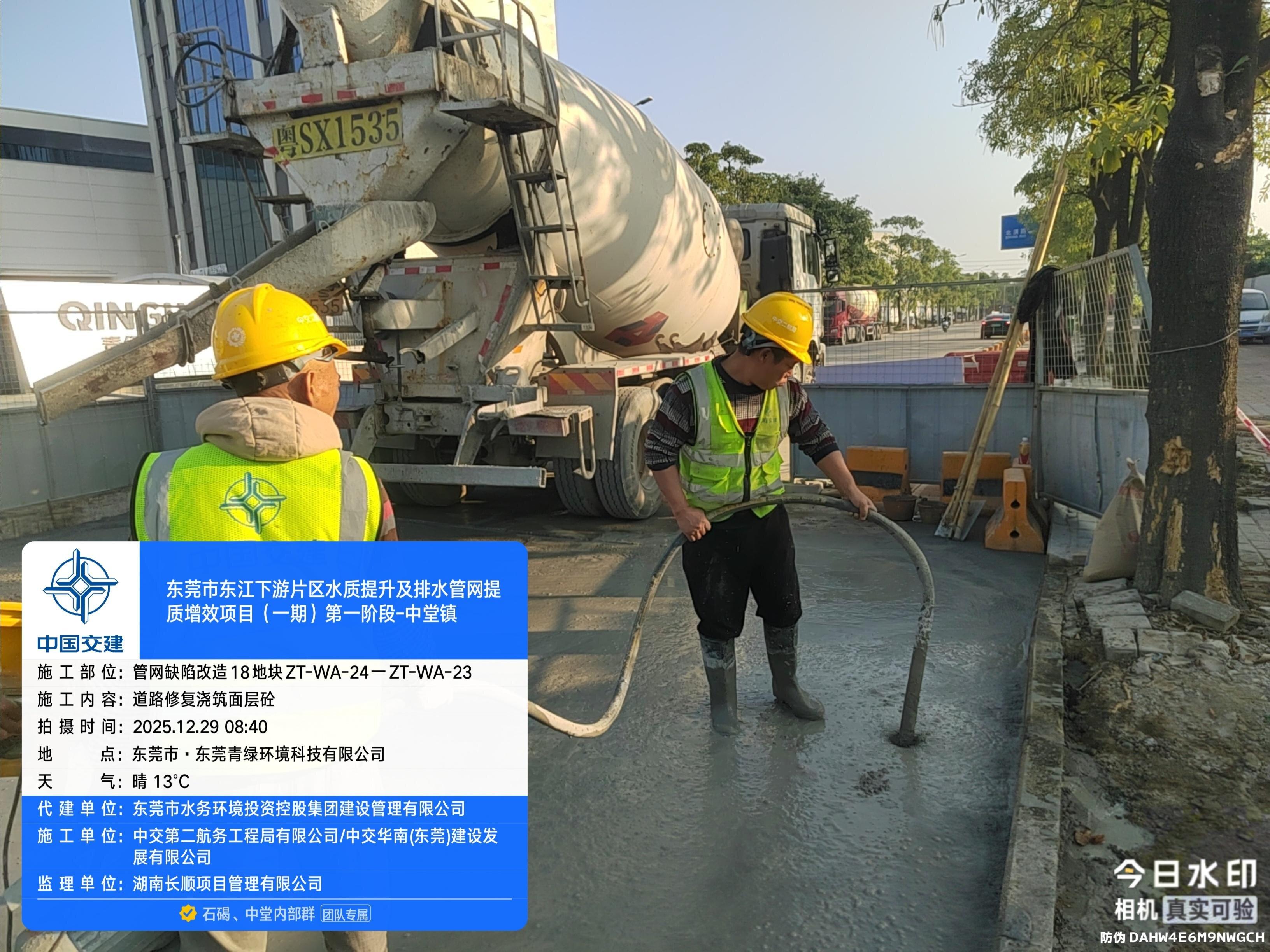 尊敬的市民,您好!您反映的问题已收悉,现回复如下: 我们于2025年12月29日09:16电话与您取得联系,并对诉求进行办理。您反映问题的工程为东莞市水务环境投资控股集团建设管理有限公司(下称“建设公司”)负责代建管理的东莞市东江下游片区水质提升及排水管网提质增效项目一期第一阶段-中堂镇,施工单位为中交第二航务工程局有限公司。 关于您反映的施工扬尘问题,建设公司已要求施工单位保证洒水降尘频率,每天不低于两次,并对已完工路面进行冲洗清扫。关于您反映的路面坑洼问题,建设公司要求施工单位科学合理安排施工工序,全力加快路面恢复进度,依据原定施工计划,您反映的位置预计2026年1月15日完工,施工期间给您造成不便,敬请谅解。 2025年12月29日,工作人员致电联系您告知上述情况。如有疑问,欢迎致电水务环境集团24小时客服热线96968,感谢您对我们工作的理解和支持!