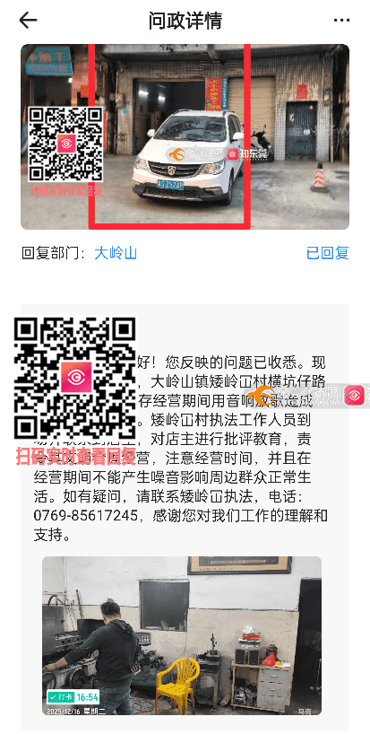 二次投诉,大岭山矮岭冚向东,横坑仔路59号,一楼这个加工作坊,缺心眼天天用音响放歌扰民,伴随着店员的鬼喊鬼叫,声音又大又是重低音,周边都是居民楼影响人休息,后面又是嘉辉学校影响学生学习。