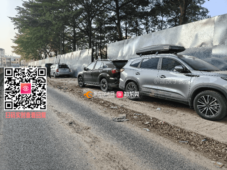 黄江地铁站c出口右转那条小路。一条道路分成了两边有一条路很乱,很差,非常多垃圾,而且路面上很多僵尸车停在那里已经很久很久了。一部小车经过就满天都是灰尘,都是泥。