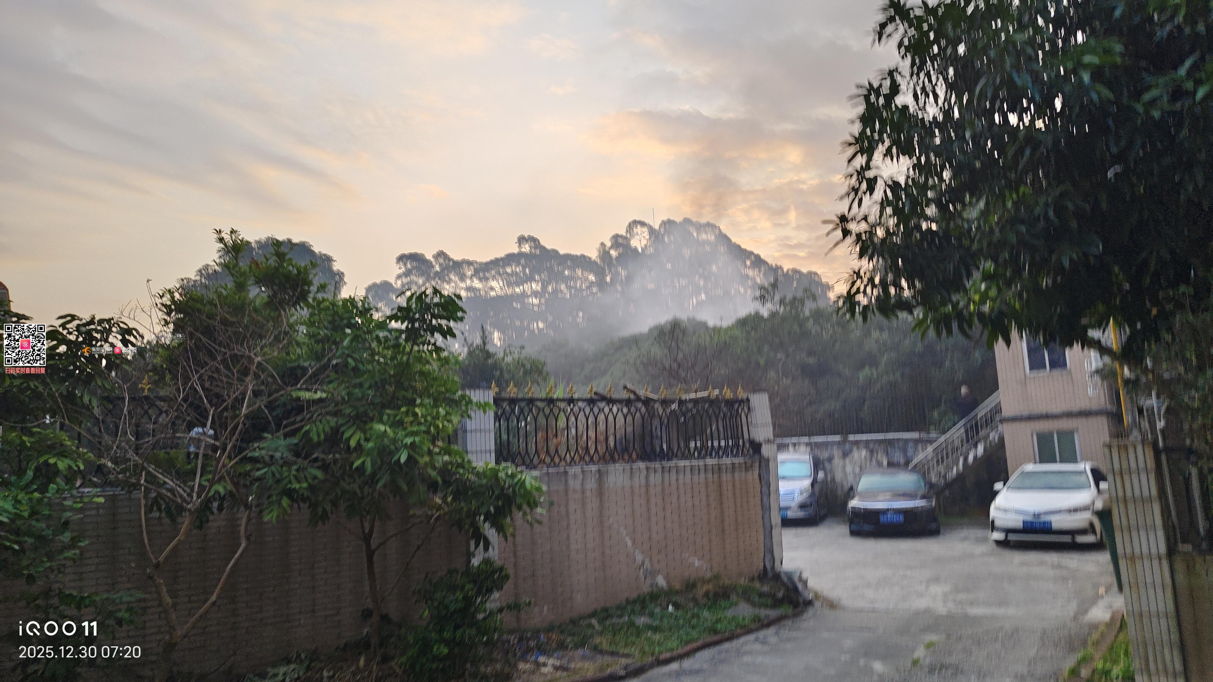 康湖山庄15期停车场边上荔枝园焚烧枯叶影响周边住户,一大早被烟薰醒。对有三高人群,跟呼吸疾病有非常大伤害。