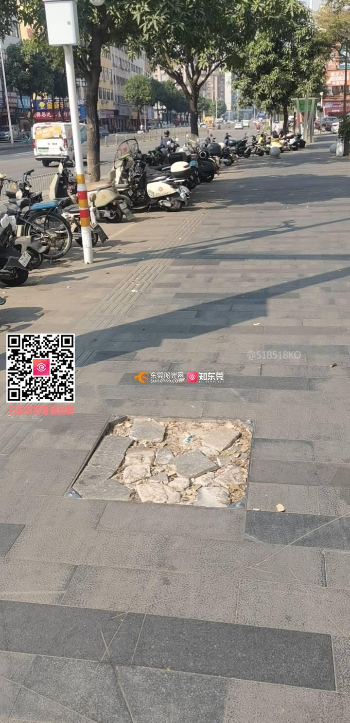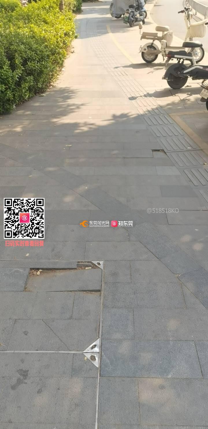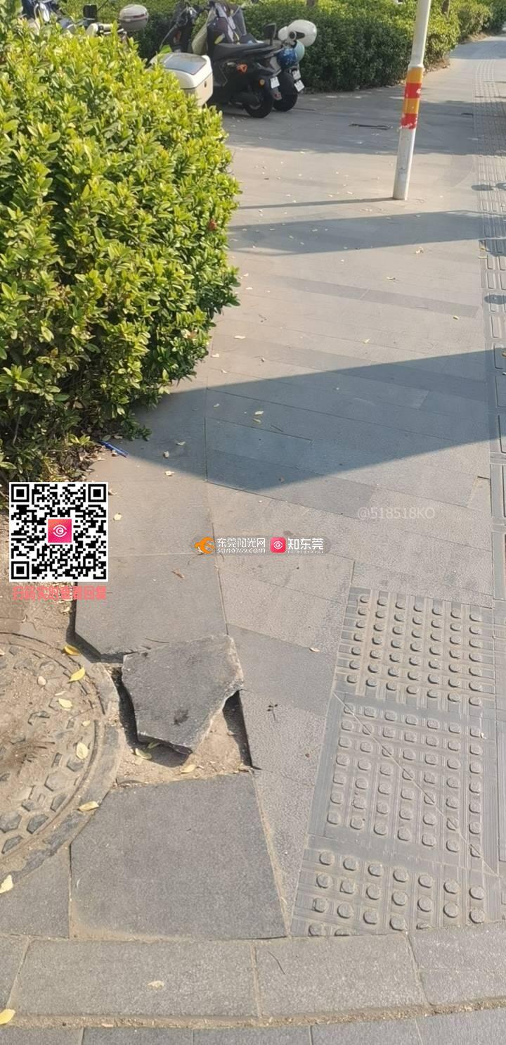 虎门镇太沙路130号路段地砖、井盖、单车道护栏破损严重,夜间看不清,存在安全隐患!