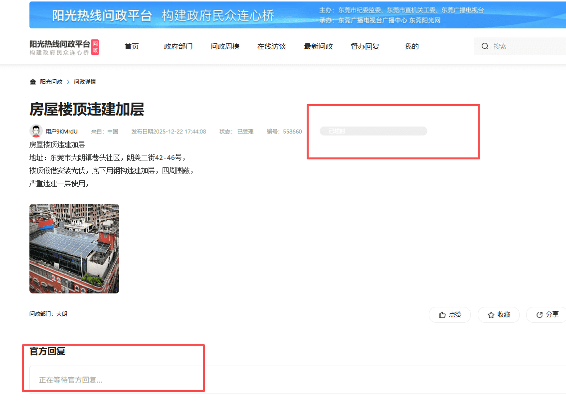 举报违建,政府部门没回复,也没有拆除违建