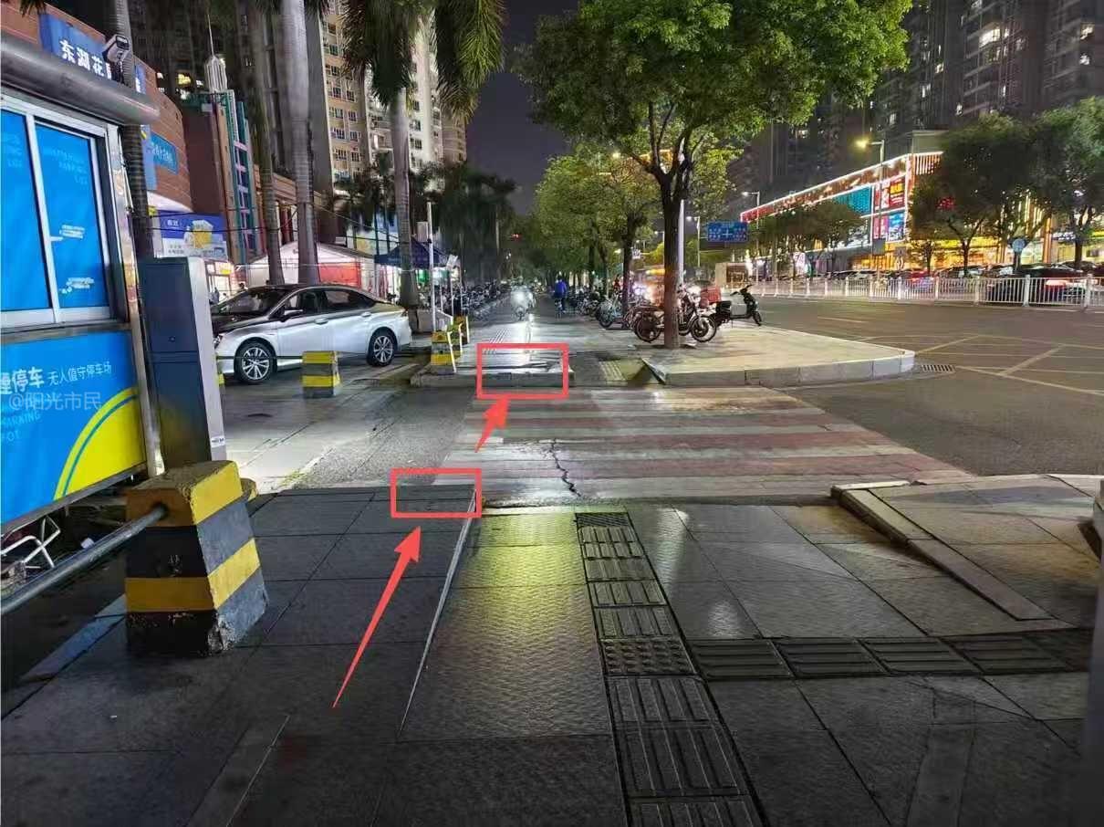 莞城东纵路3号非机动道,东湖花园西大堂入口突然变窄,行人和非机动车通行困难,请拓宽到“非机动车划线的宽度”。
