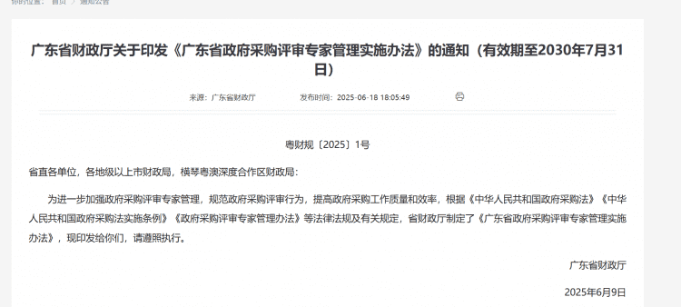 您好!根据广东省财政厅印发的《广东省政府采购评审专家管理实施办法》(粤财规〔2025〕1号)第十五条 评审专家实行聘期制,聘期三年,聘期期满自动解除聘任关系。评审专家可在聘期期满前提出续聘申请。