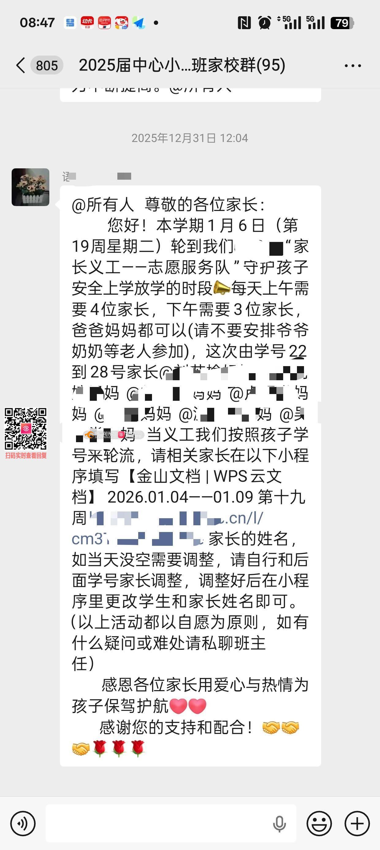 护学岗说是自愿参与,可班主任点名,谁敢说个不字? 怕孩子被穿小鞋,怕被戳脊梁骨不负责,只能捏着鼻子请假去。 结果呢?出事了连个保障条例都没有,找谁兜底? 我们纳税人的钱,养着警察养着保安,校门口的安全凭啥甩给家长? 这是拿家长当免费劳动力,还得赌上健康。 希望张家界家长护学岗事件能引起东莞教育局的重视,家长在护学岗途中真的出事了谁负责? 后面回复不要问我反映的是东莞哪个学校,全东莞学校都一样,别跟说东莞教育局不知道这个事情哈