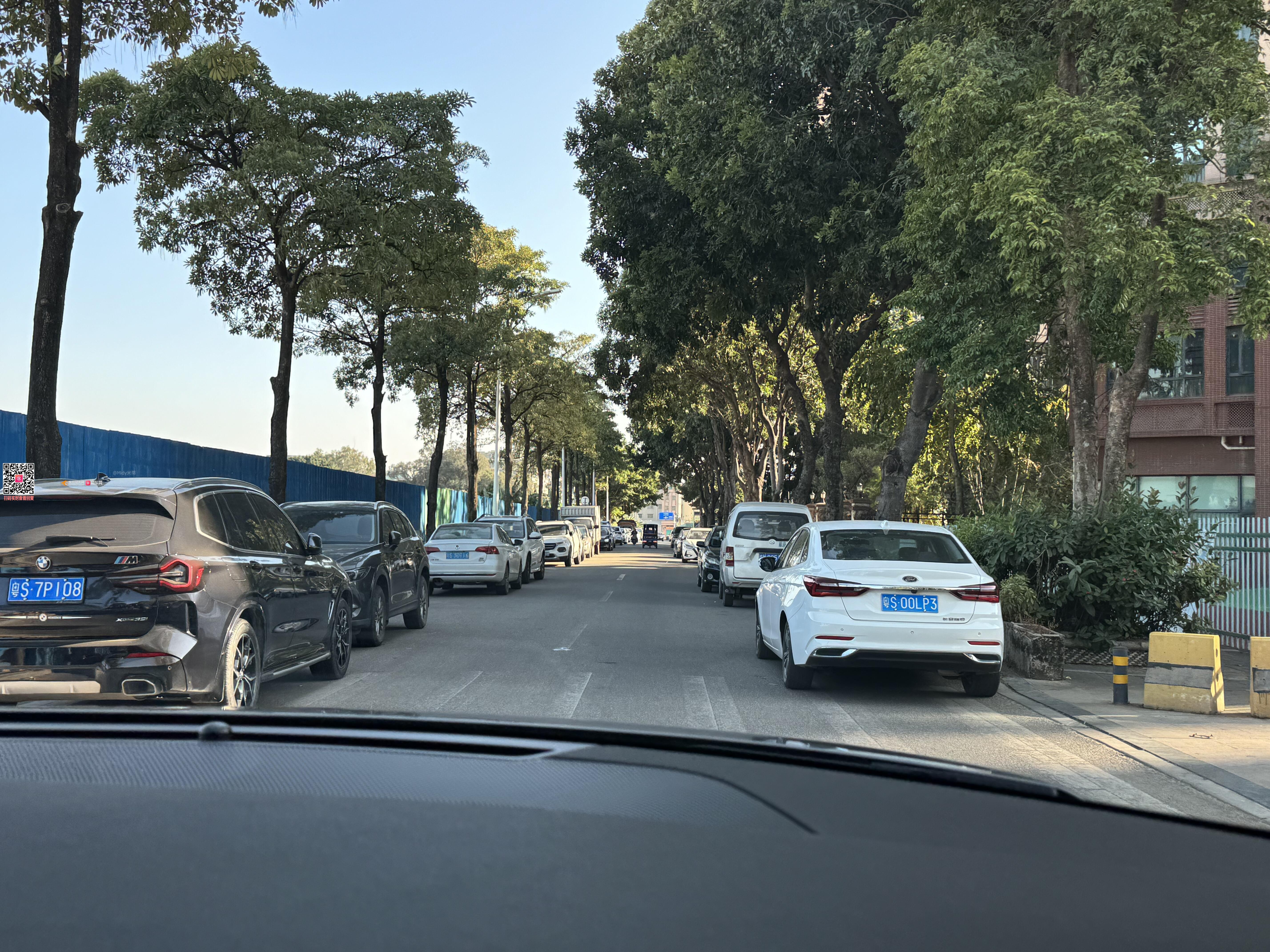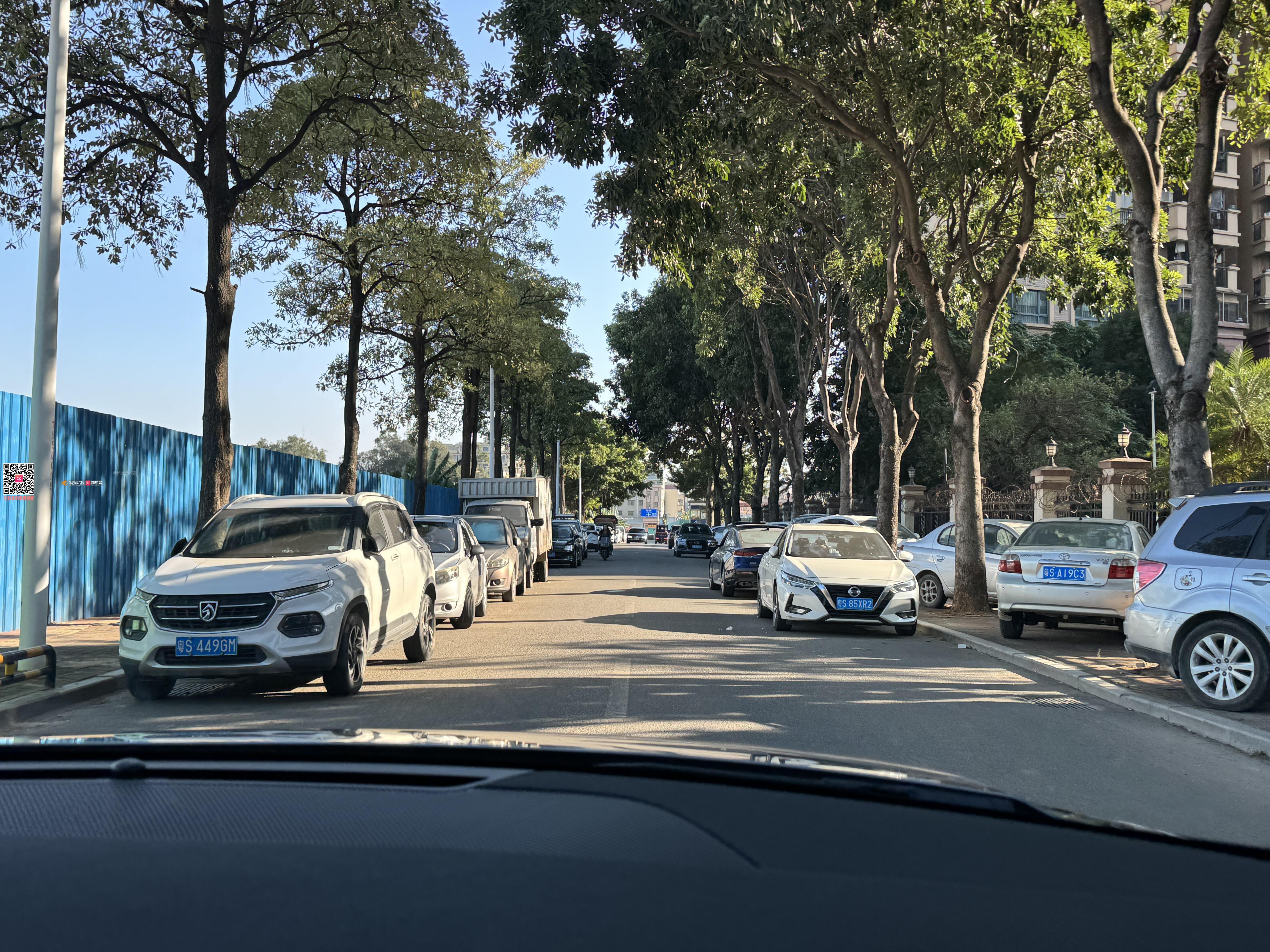 大朗镇嘉宏银朗豪庭小区售楼部门口的道路,两旁长期有车辆违停,车辆无法正常通行,会车困难。严重影响周边居民出行安全,望有关部门合理处理,谢谢。