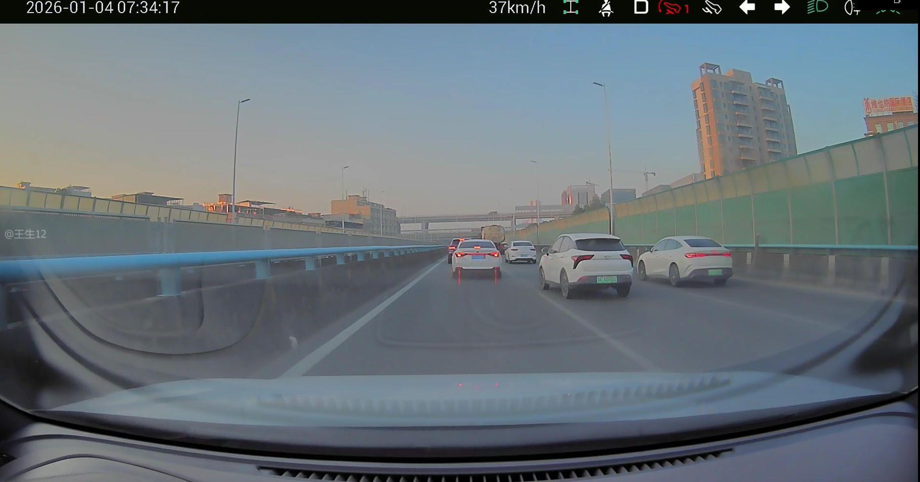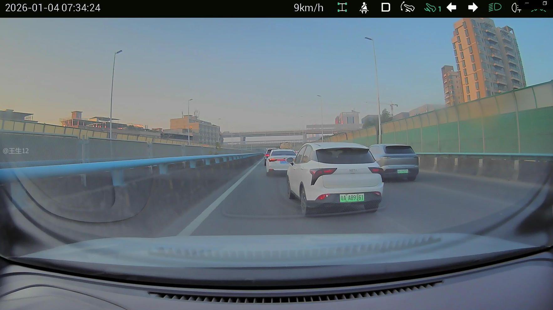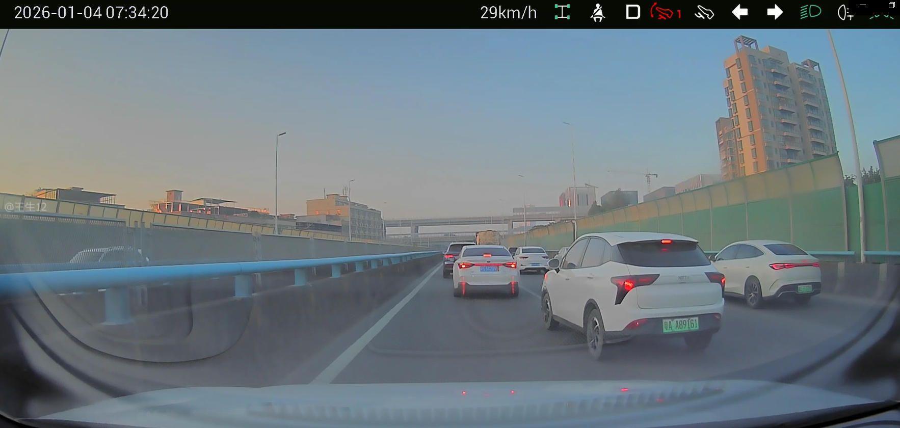 2026年1月4日早上7点34分左右,在生态园大道莞樟路跨线桥上,小汽车粤AA89161在没有变道条件的情况下,违法不打转向灯、实线变道。请严肃处理!