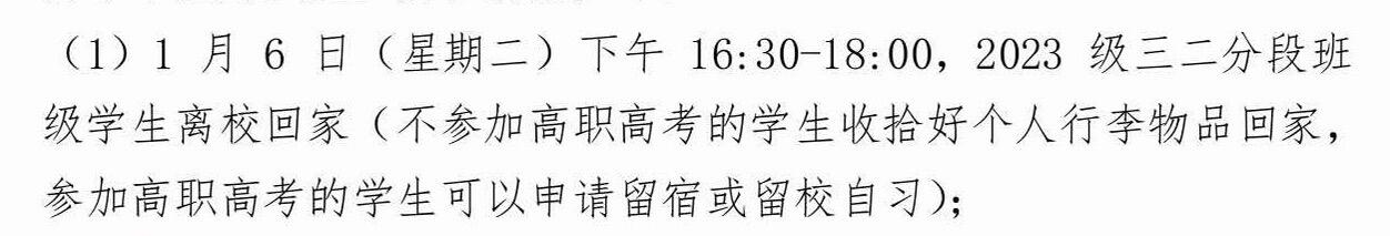 为什么同样是23级学生,32分段的同学可以提前离校,并且23级高考生1月6号在校,车辆进入学校如果发生交通意外,影响高考生又该如何解决?我认为应该人人平等,32分段学生确实不应该像其他年级学生那么晚放假,但是同样是23级学生,为什么他们可以提前离校,尽管是只相差一天,既然这样那就应该统一1月7号离校,这样既不影响高考生也不影响他们32分段学生。