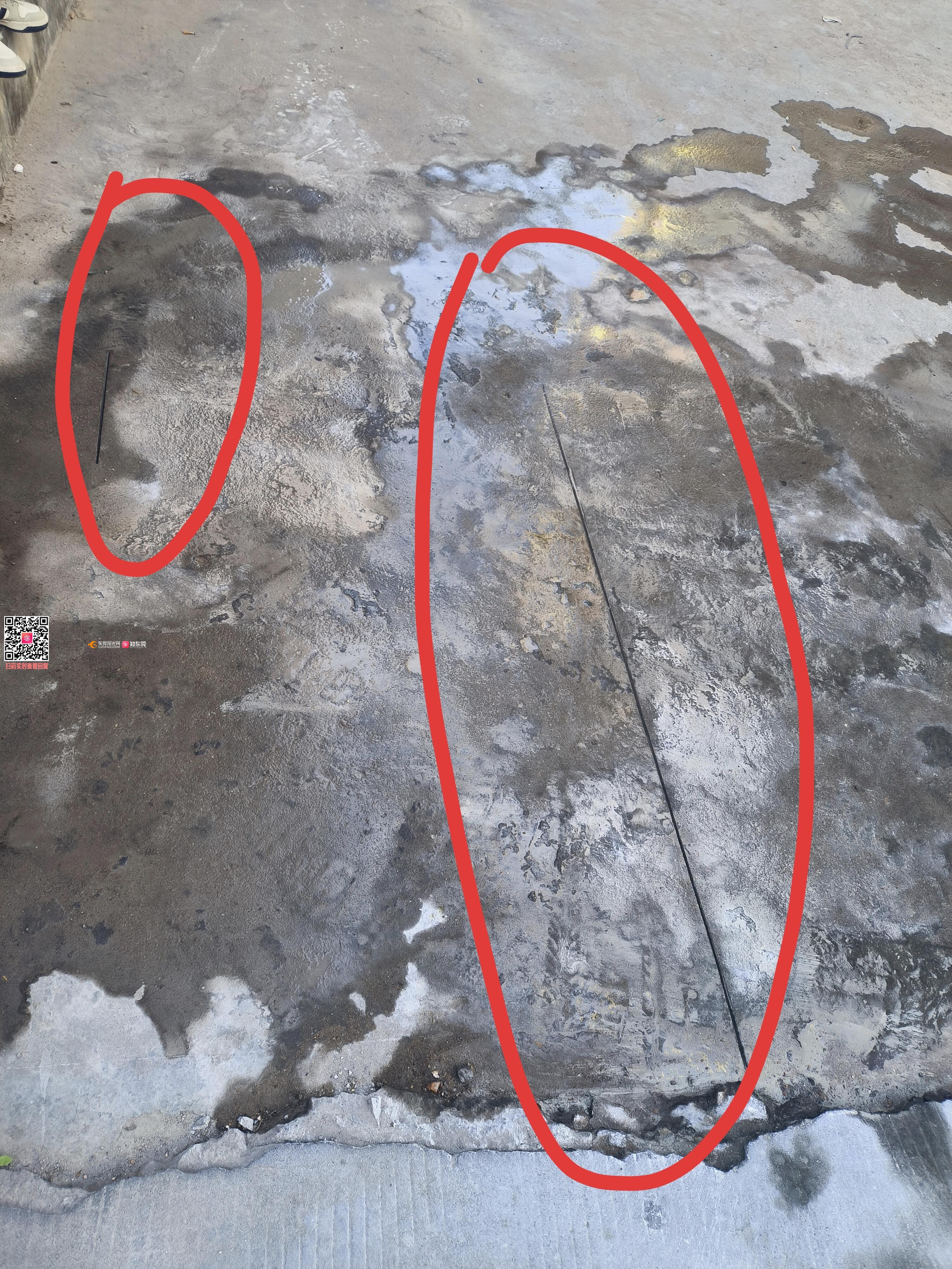 事发茶山镇茶园路49号,如图所示,49号和47号中间的地面已经被切割了表面,但周遭无围闭无公示,我们今早报警跟现场施工人员沟通,他们说自己是移动的施工队,但没有任何证明文件,隔壁移动营业厅帮忙打电话向公司确认过无此地段施工计划。