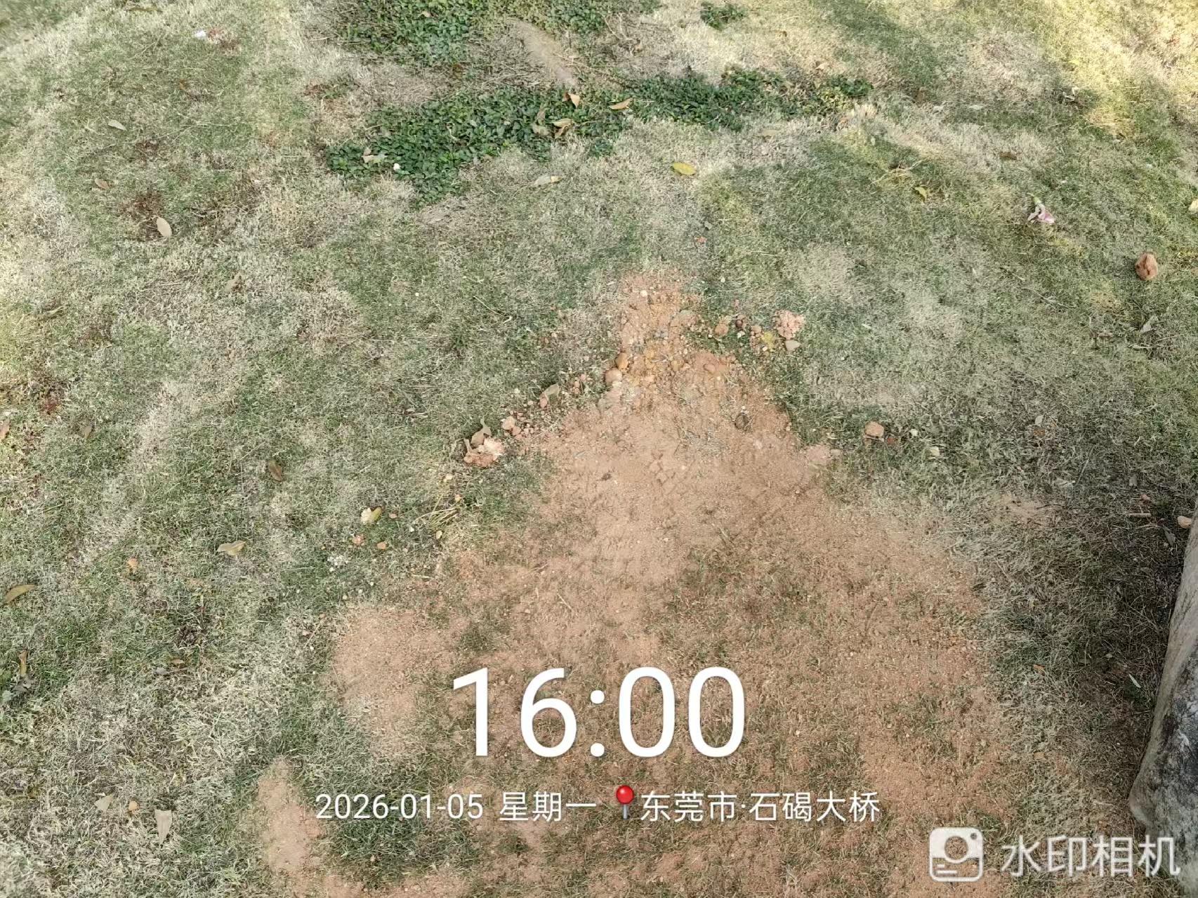 滨江公园草坪有个大洞泥土流失