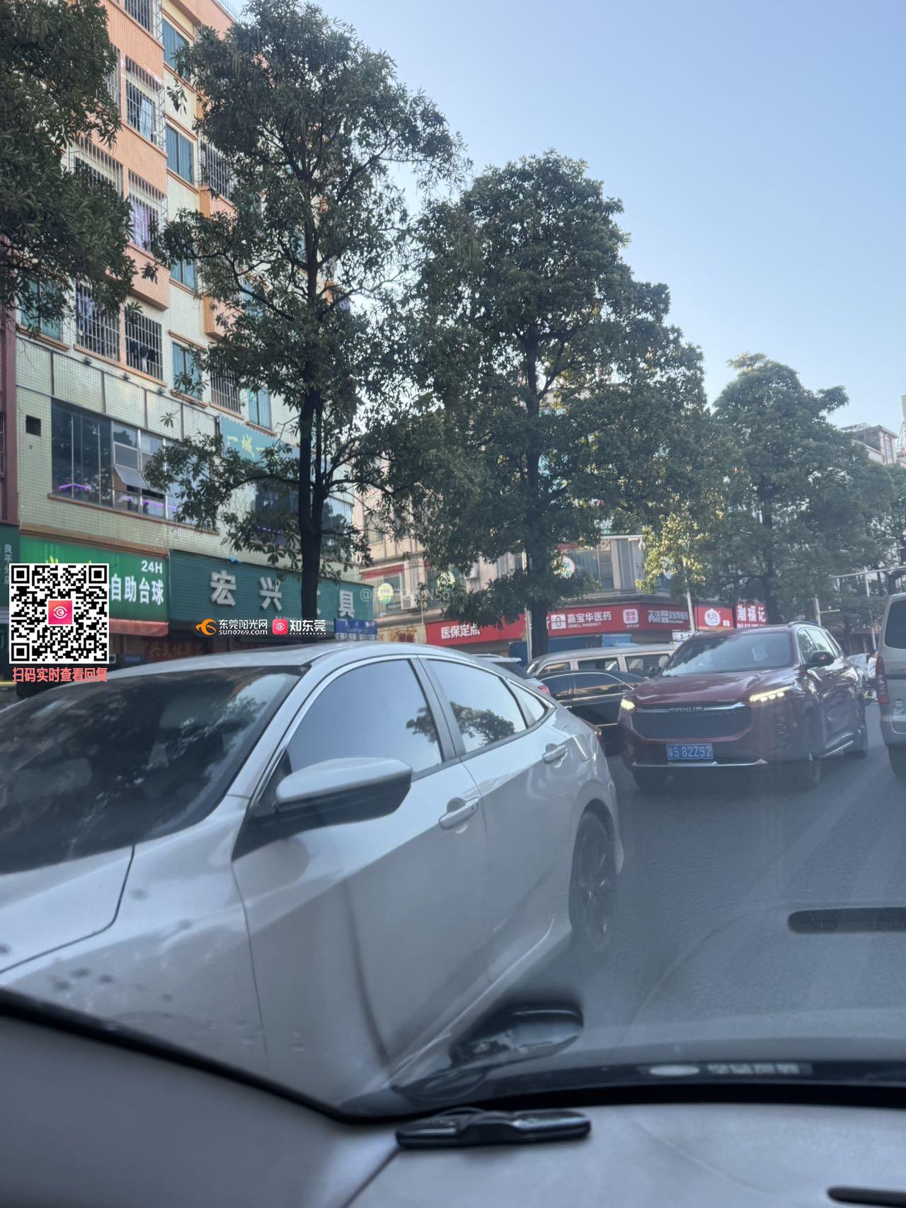 寮步良平大道两侧车辆乱停乱放阻塞交通