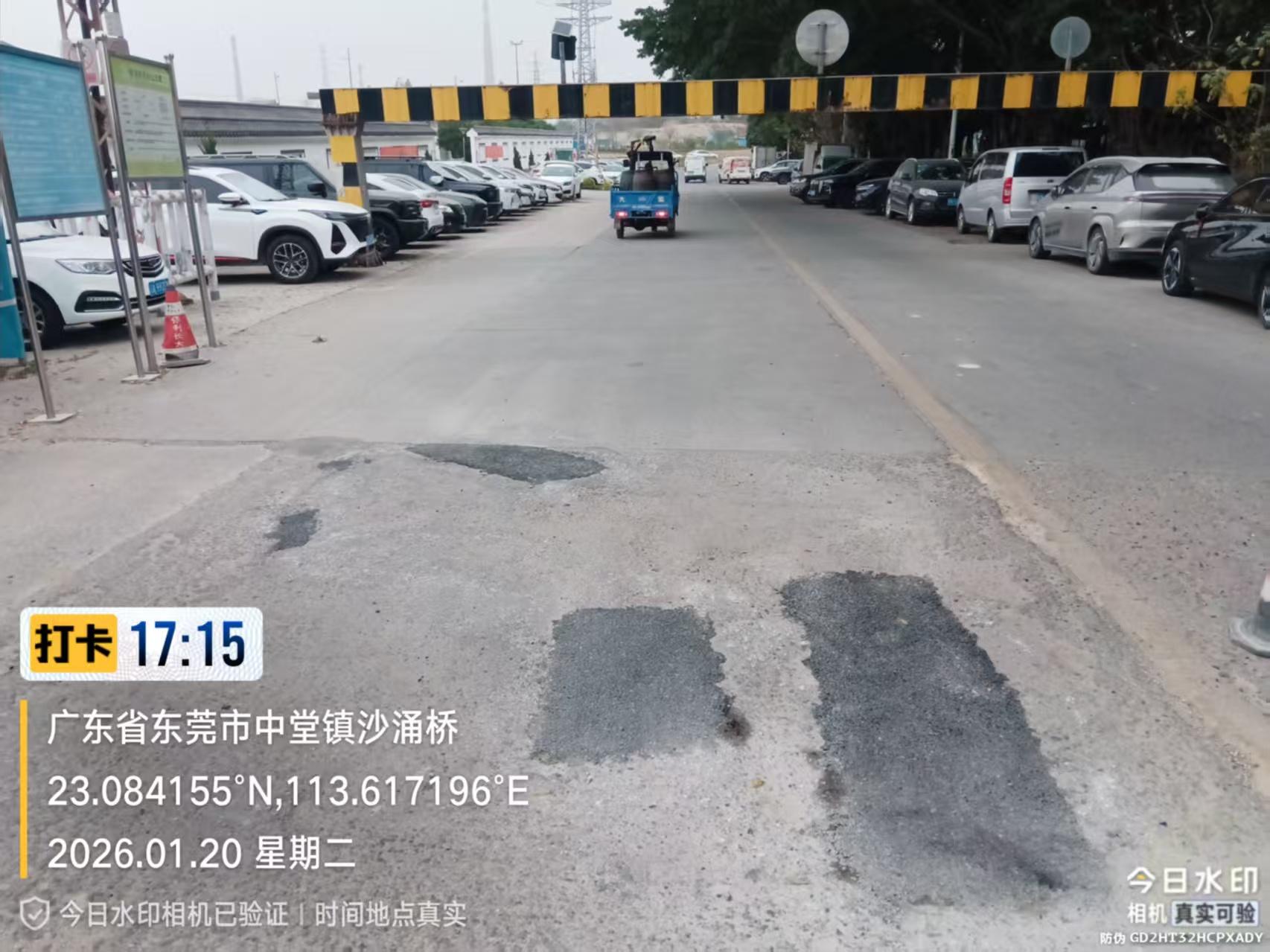 尊敬的市民,您好!您反映的问题已收悉,现回复如下:2026年1月12日我中心工作人员到现场勘查后安排人员跟进,1月20日施工队伍已对该位置路面坑洼处进行修复,现已修复完成。下来我中心将加大巡查,及时对存在隐患的地方进行修复。如有疑问,请联系东莞市中堂镇公用事业服务中心,联系电话:88122808。感谢您对我们工作的理解和支持!