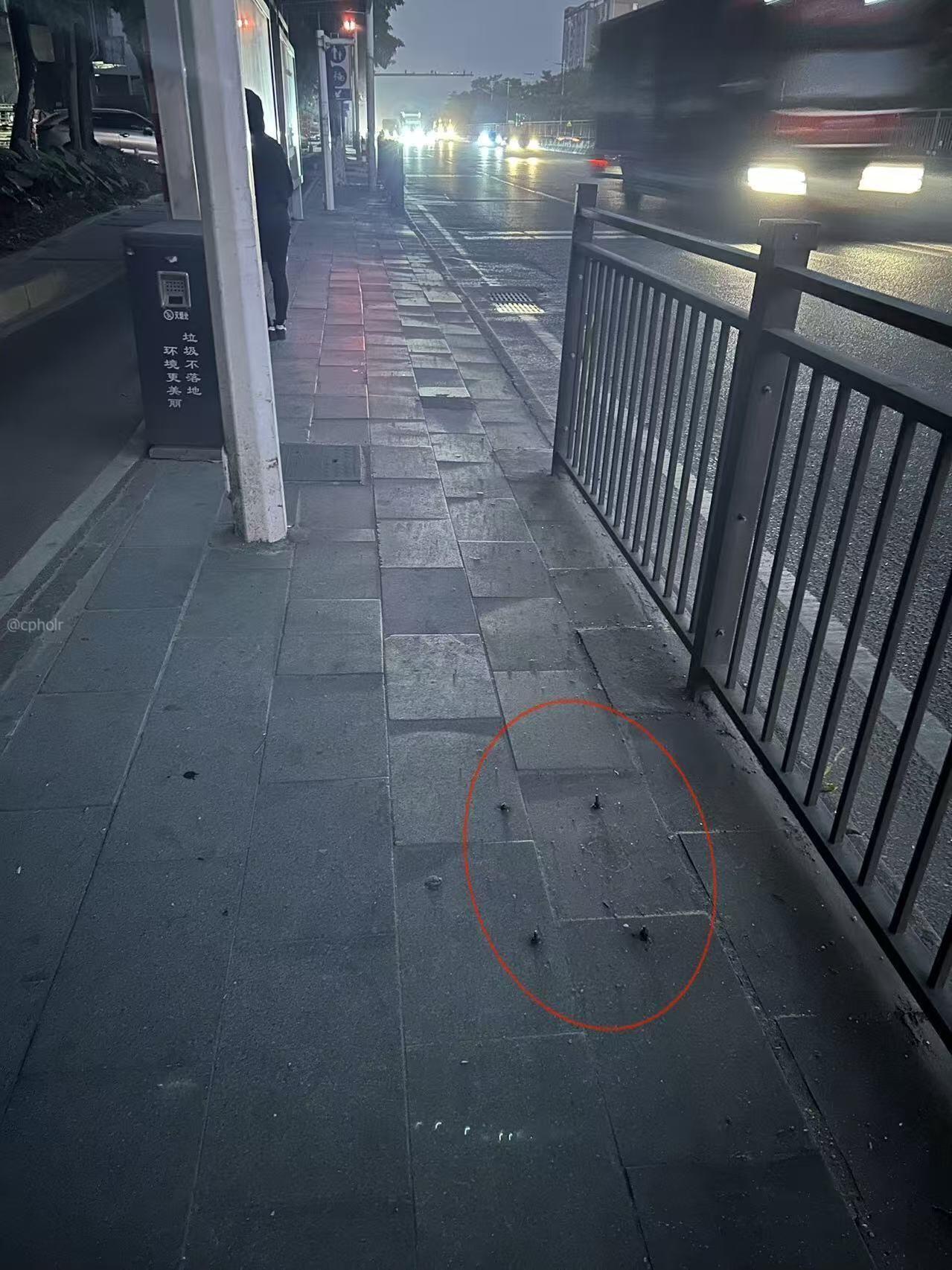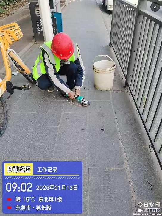 矮岭冚公交车站(长安方向)站台旁钉子未拔除 2026年1月12日 早上拍摄 记得带上角磨机去切割。 位置如图