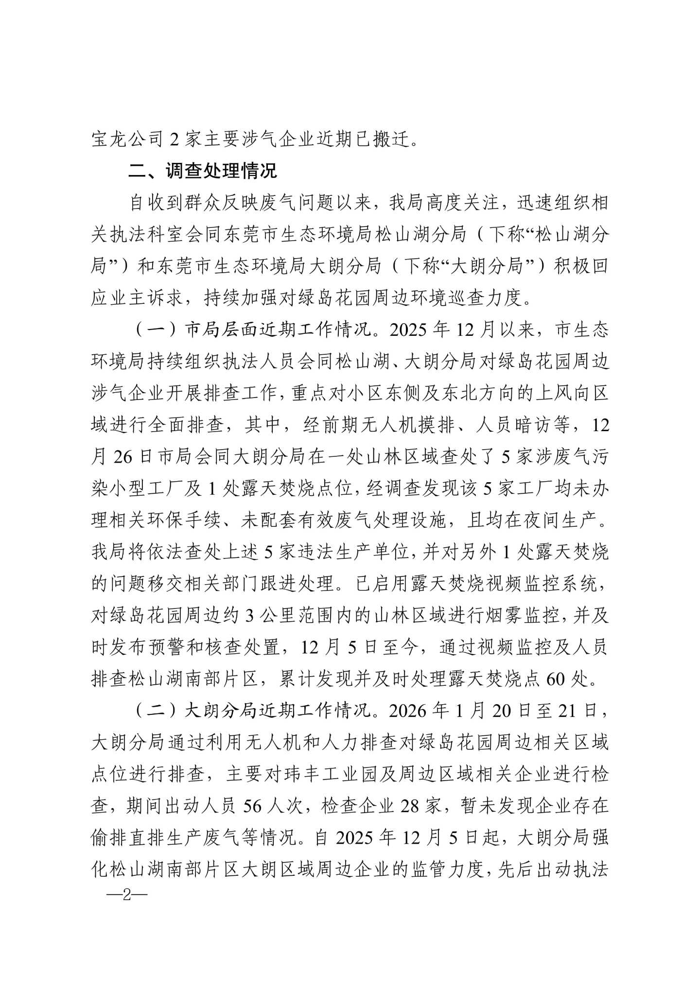 请政府解决松山湖第二幼儿园清澜山学校绿岛花园小区大气严重污染问题