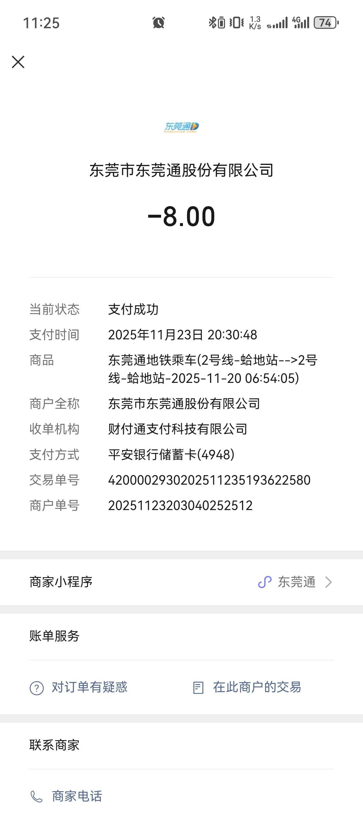 11月23日,乘坐地铁从西平到蛤地,扣费8元。请致歉并退回。
