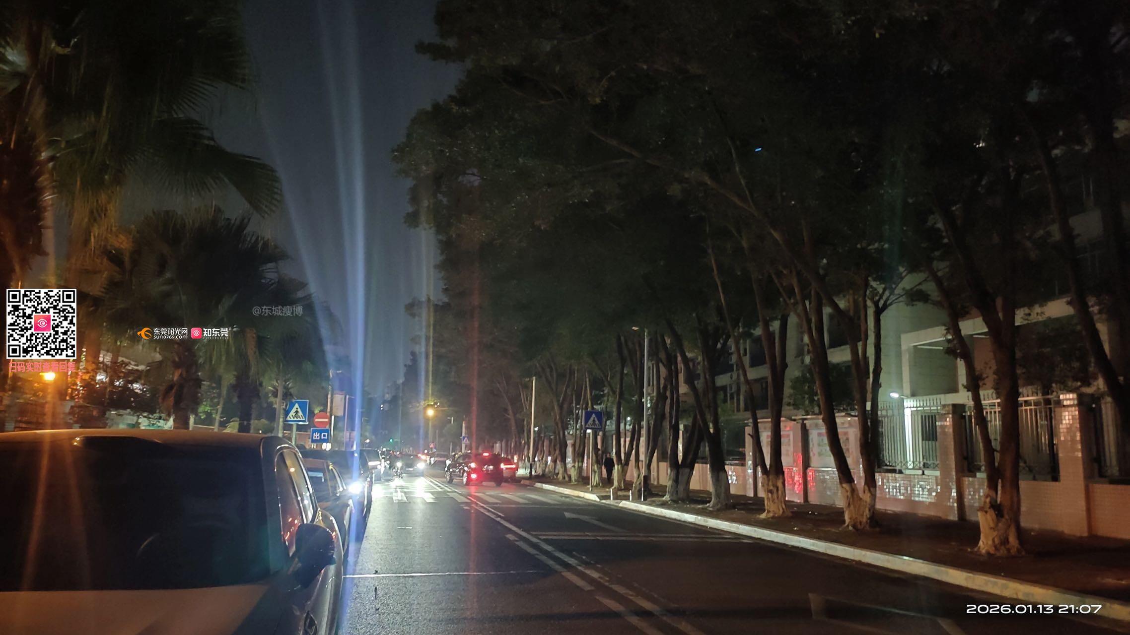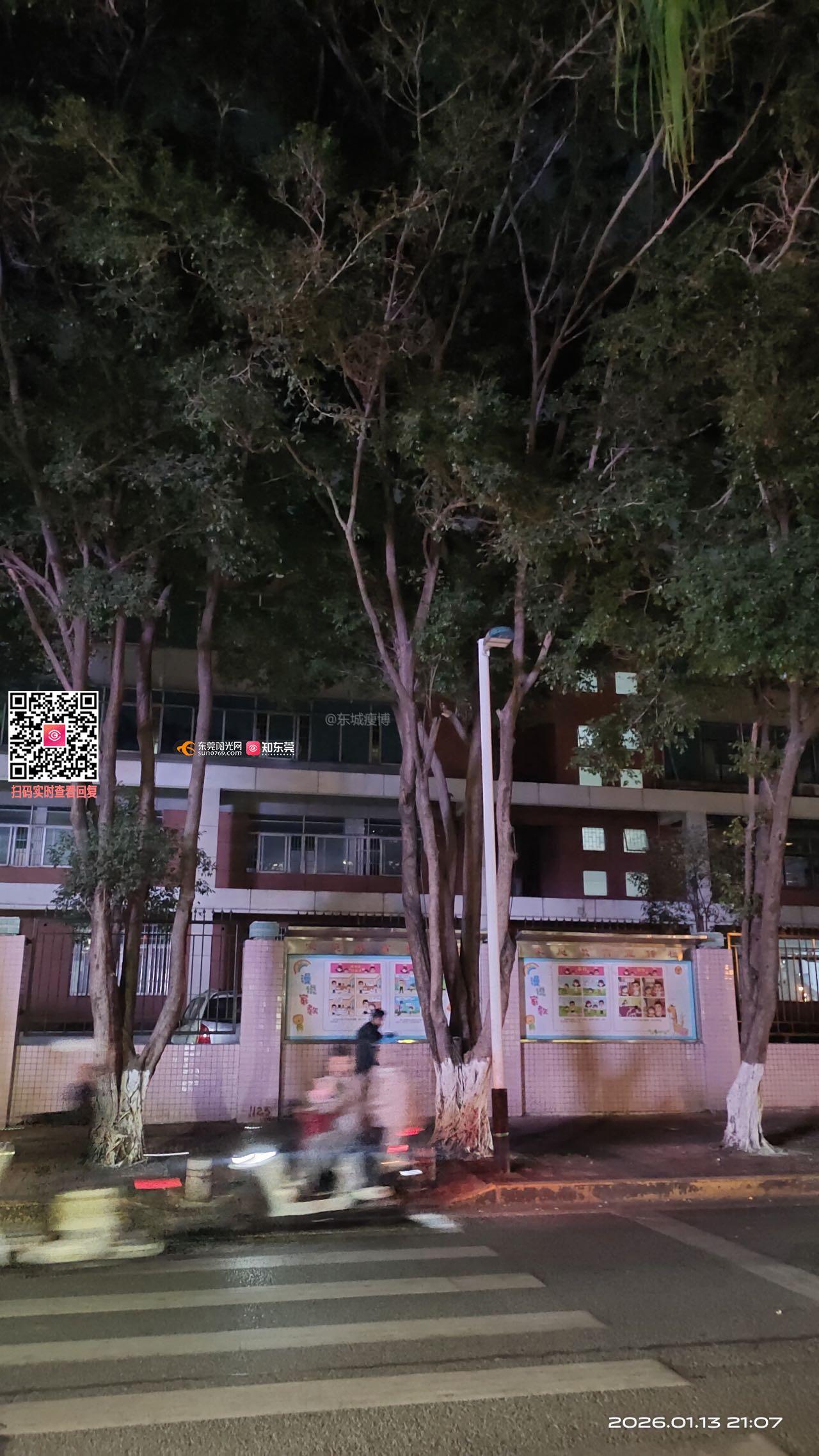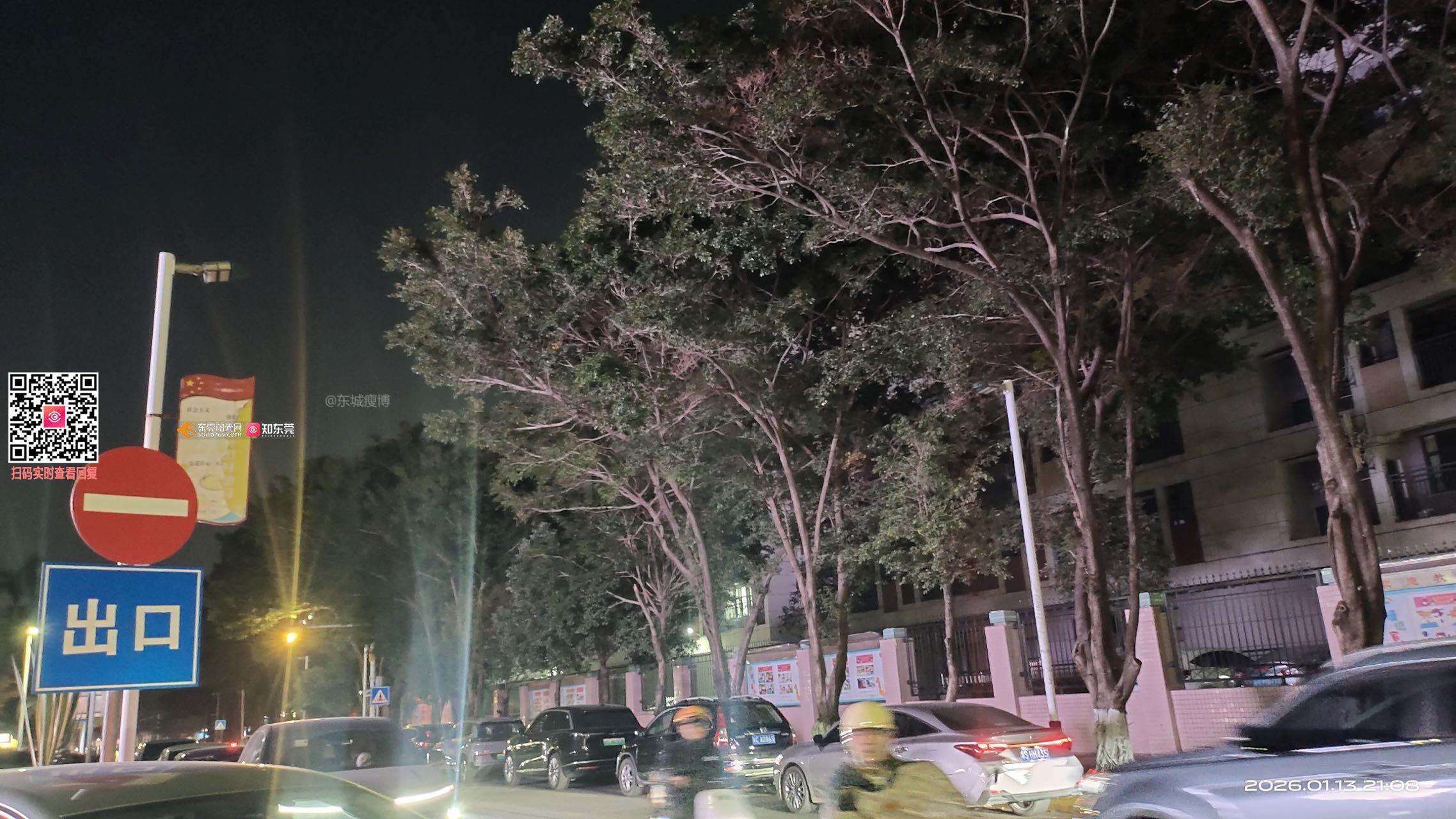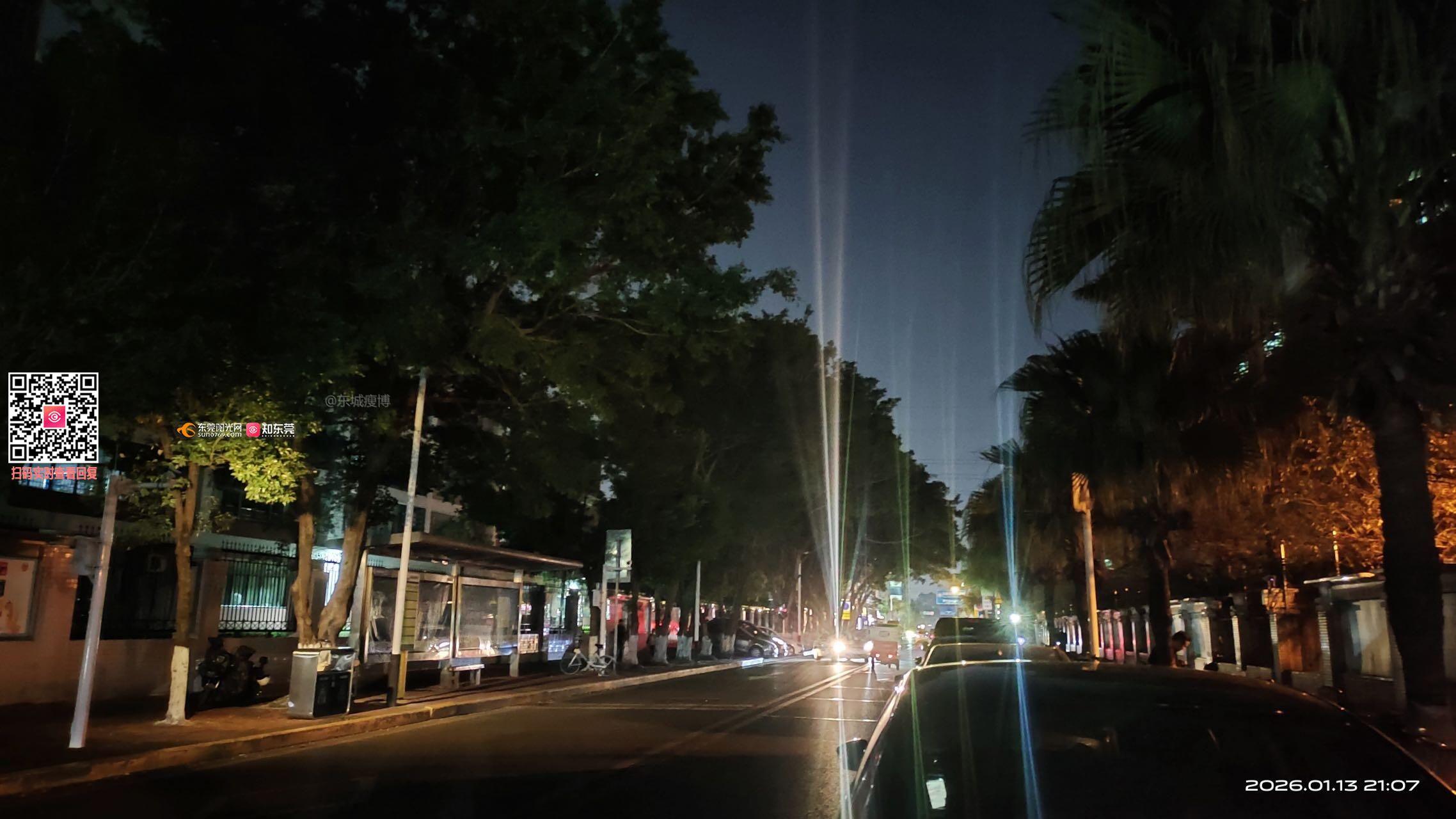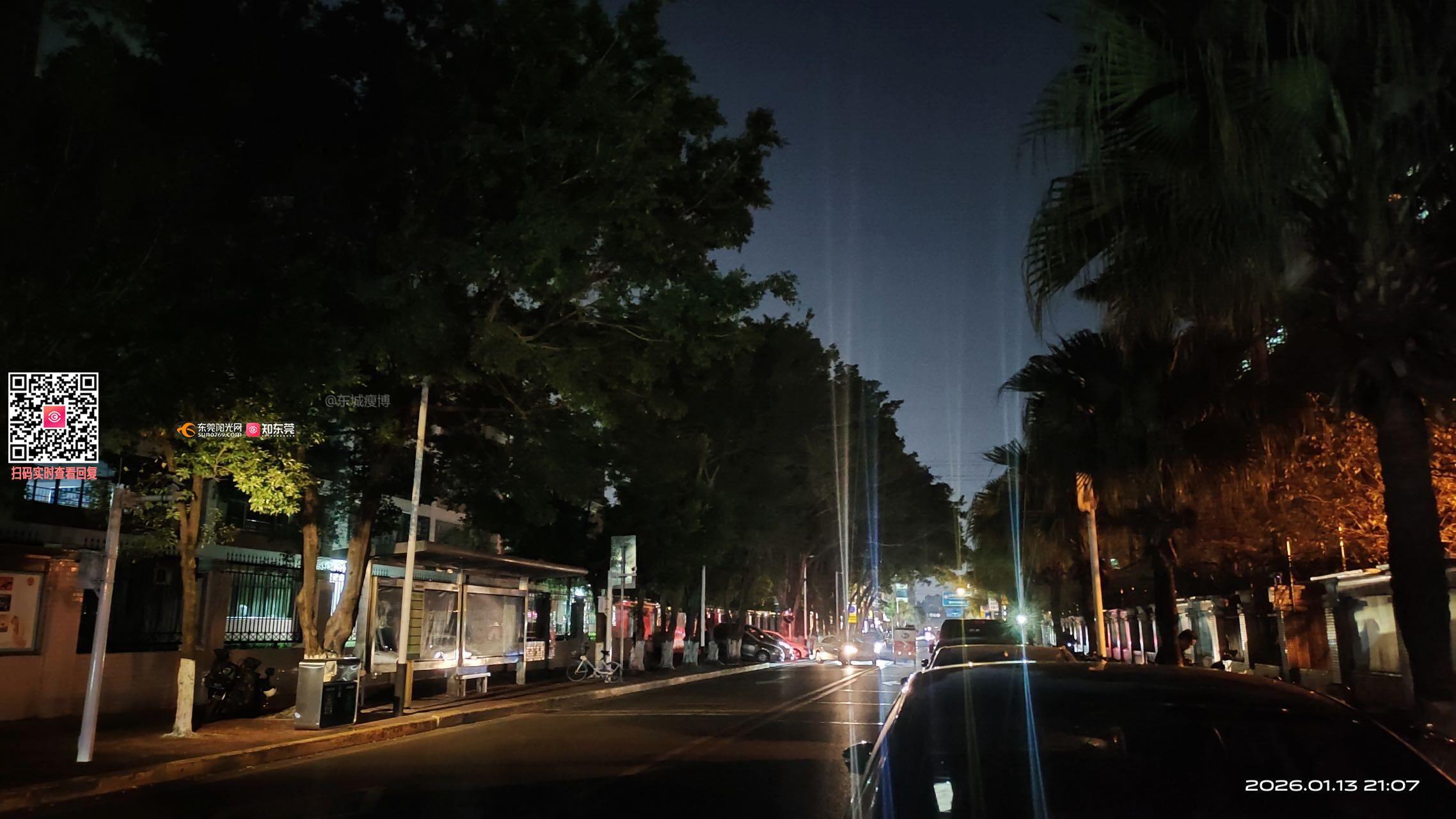 东莞市东城街道学前路(东城实验中学路段)的路灯形同虚设