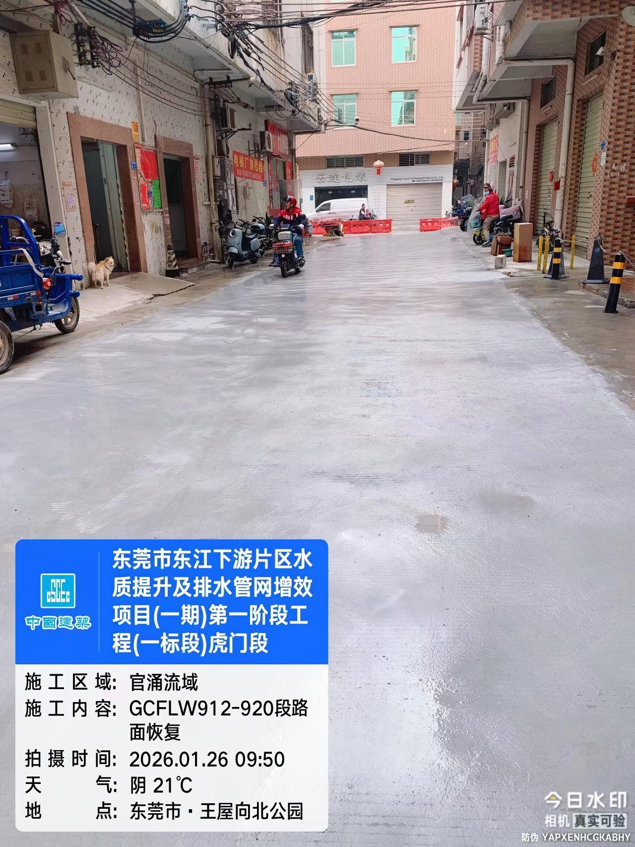 尊敬的市民,您好!您反映的问题已收悉,现回复如下: 收到反映的情况后,我们于2026年1月26日10:00电话与您取得联系,并对诉求进行办理。您反映问题的工程为东莞市水务环境投资控股集团建设管理有限公司(下称“建设公司”)负责代建管理的东莞市东江下游片区水质提升及排水管网提质增效项目一期第一阶段工程-虎门镇,施工单位为中建三局集团有限公司。 关于您反映的路面未恢复的问题,经核实,您反映路段施工已于2025年12月10日将石粉回填至路面高度。此前,因博涌社区从道路美观及整体升级角度考虑,要求该路段采取整版恢复的方式,且方案上报、审核及批复流程所需时间较长,故导致路面恢复工作未能紧随管道工程完成后立即开展。目前,该路段的施工方案已获正式批复。施工单位已于2026年1月22日进场开展路面基础清理工作,并于1月25日完成混凝土路面恢复工作,1月28日撤除围挡并恢复道路正常通行。由此造成不便,敬请谅解。 2026年1月28日,工作人员致电告知您上述情况。 如有疑问,欢迎致电水务环境集团24小时客服热线96968,感谢您对我们工作的理解和支持!