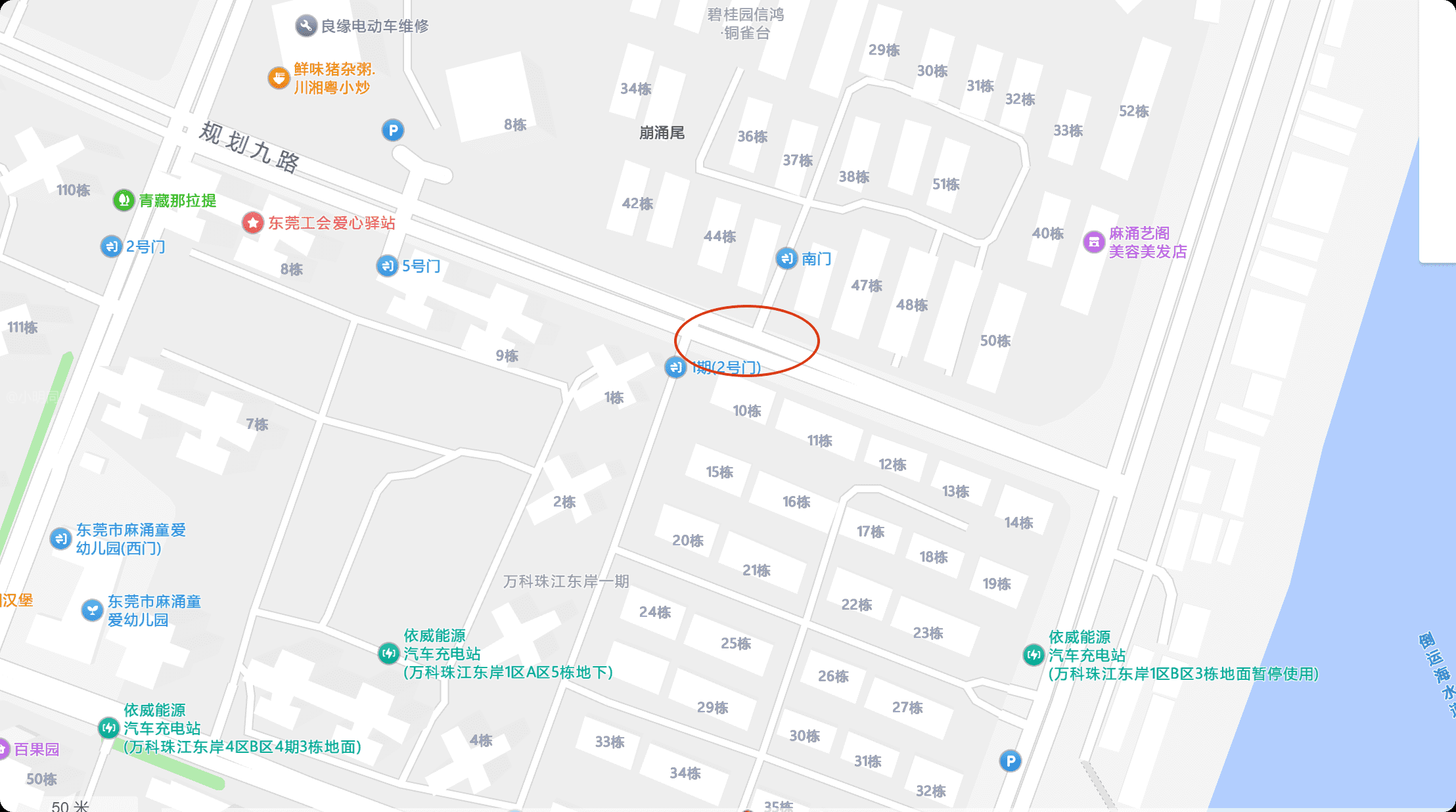 麻涌万科珠江东岸一期规划九路处,有人行道与地面衔接处存在20cm以上的高差,夜晚天黑,人员行走容易摔倒,建议铺设水泥作为坡度。