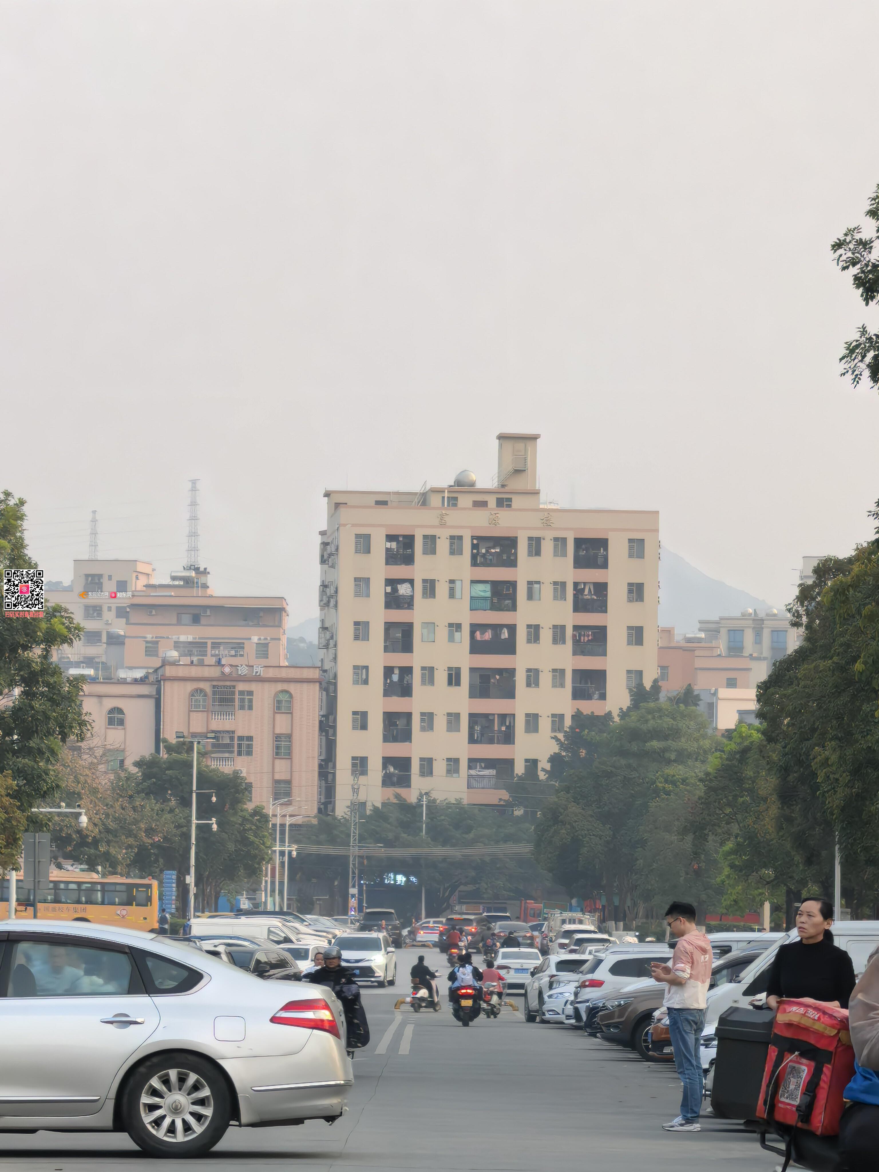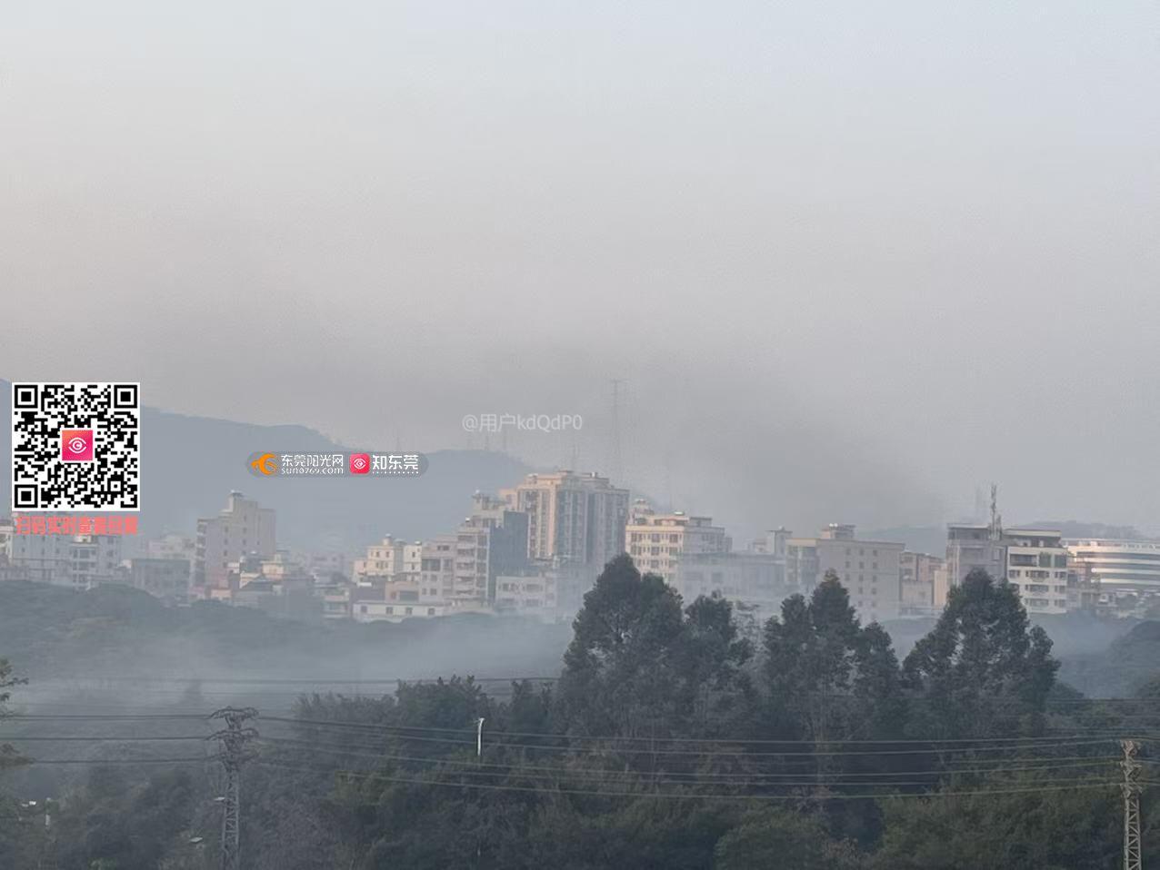 大岭山镇水朗村荔枝林附近的废品收购站私烧垃圾造成空气污染,大塘村第三小学附近雾霾严重