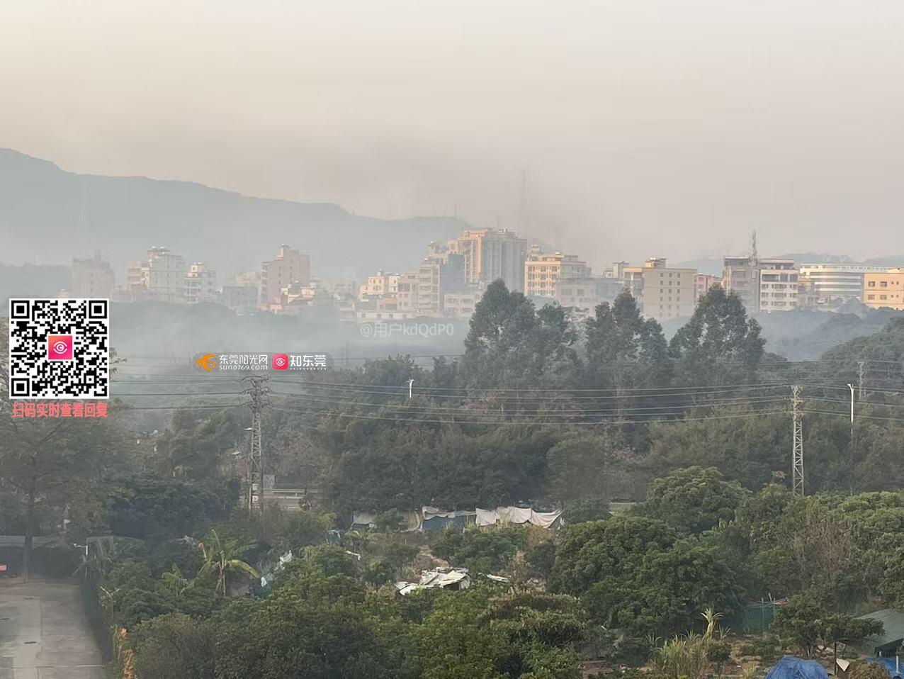 大岭山镇大朗荔枝林附近的废品收购站私烧垃圾造成空气污染,第三小学附近雾霾严重