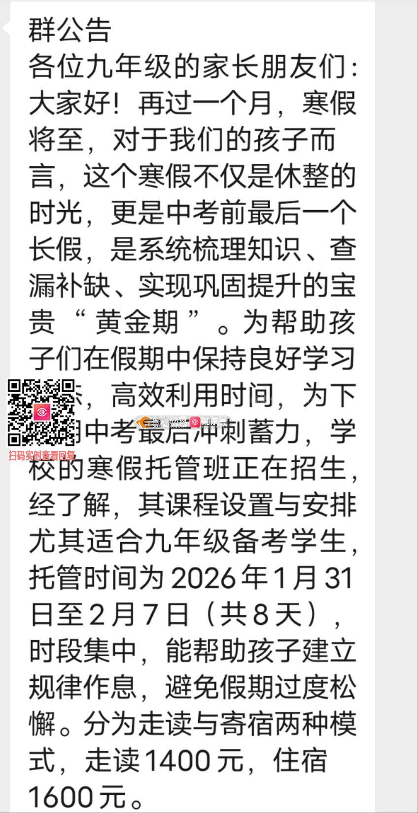 学校针对这件事情召开了行政会议,重申寒假不开展任何形式的补课,对转发培训机构信息的老师提出批评。该校也强调:不允许任何老师帮助培训机构宣传寒假班,不得参与相关培训活动,一经发现,该校将严肃处理。