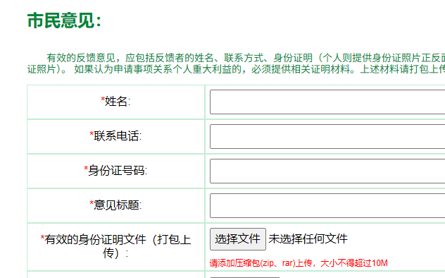 业务公式系统征集市民意见需要的身份证明只接受压缩包(zip、rar),甚至不接受图片或pdf文档格式,是否有限制市民反馈意见的便利程度?