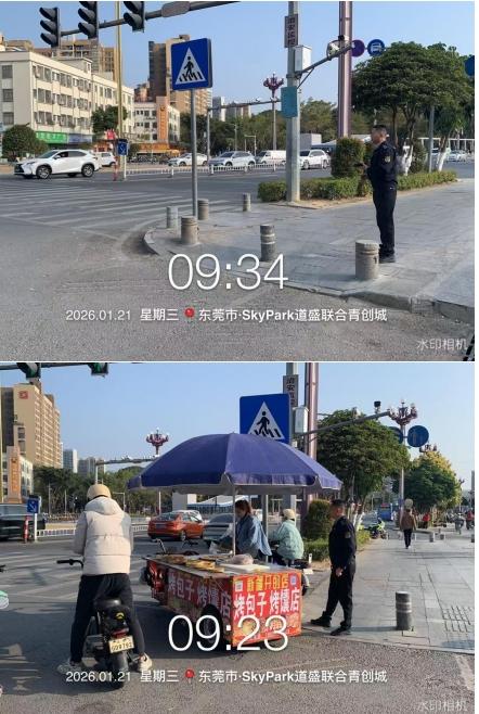 尊敬的市民,您好!您反映的问题已收悉,非常感谢您对城市管理工作的关注和监督。2026年1月21日,我分局执法人员到达现场进行调查处理。经查情况属实。我分局执法人员对相关人员进行批评教育,责令其不得占道经营,要求立即撤走占道物品,向其解释占道经营的危害性及有关法律法规。为进一步解决您反映的问题,我们还将采取以下工作措施和下一步计划: 1. 科学部署巡查力量:采用“定人、定岗、定责”的方式,明确执法人员的责任区域和工作任务。针对主次干道、小区、商超周边等重点地区,增加巡查频次,采取提前到岗、延后撤岗、错峰巡查的方式,确保管控时段无缝衔接,及时发现并处理占道经营问题。 2. 强化宣传教育引导:通过多种渠道和方式,如上门走访、发放宣传资料、现场讲解等,向流动摊贩、占道经营者宣传城市管理相关法律法规,告知其占道经营的危害和后果,引导他们在指定范围内合理经营。 3. 严格执法规范整治:对长期占道经营、拒不配合工作的摊主及经营户,依法进行查处,包括暂扣经营工具、物品,处以罚款等。对于涉及现场制售食品、使用液化石油气瓶等存在安全隐患的占道经营行为,重点进行治理。 4. 建立联合执法机制:加强与公安、市场监管等部门的沟通协调,定期组织开展联合执法行动,共同打击违法违规问题,形成整治合力,提升执法效能。 感谢您对我们工作的理解和支持。如再发现有类似的情况或其他城市管理问题,欢迎随时与我们联系(联系电话:82238303),我们将竭诚为您服务,共同为营造和谐美好的人居环境品质贡献力量。承办单位:东莞市城市管理和综合执法局大朗分局