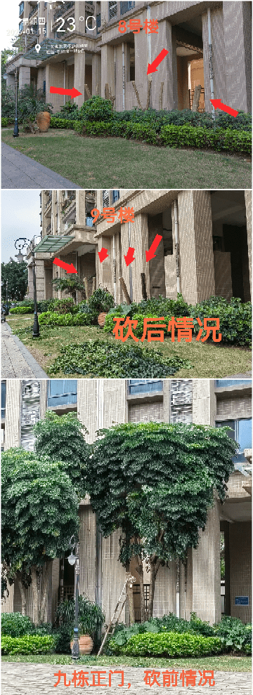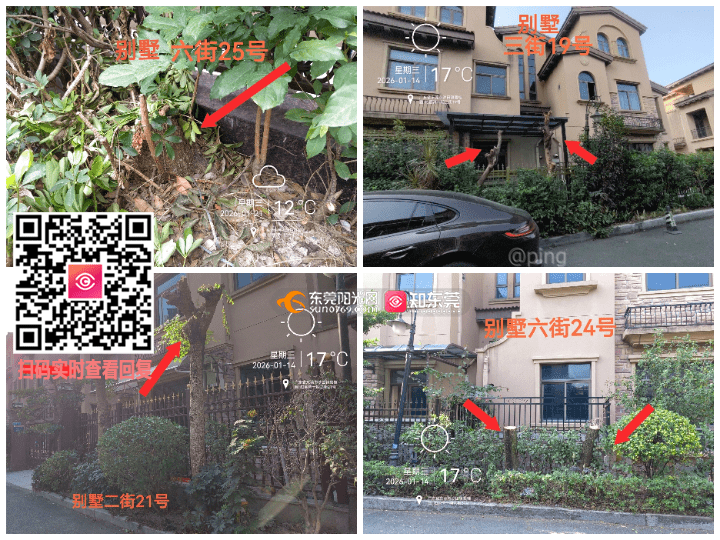 地址:东莞市沙田镇碧桂园柏丽湾一期。物业从2025年10月至12月期间,未向城管局报备,未在小区公示的情况下,对别墅,洋房多处树木进行过度伐,请城管部门到小区全面核查,严厉处罚物业违法行为。