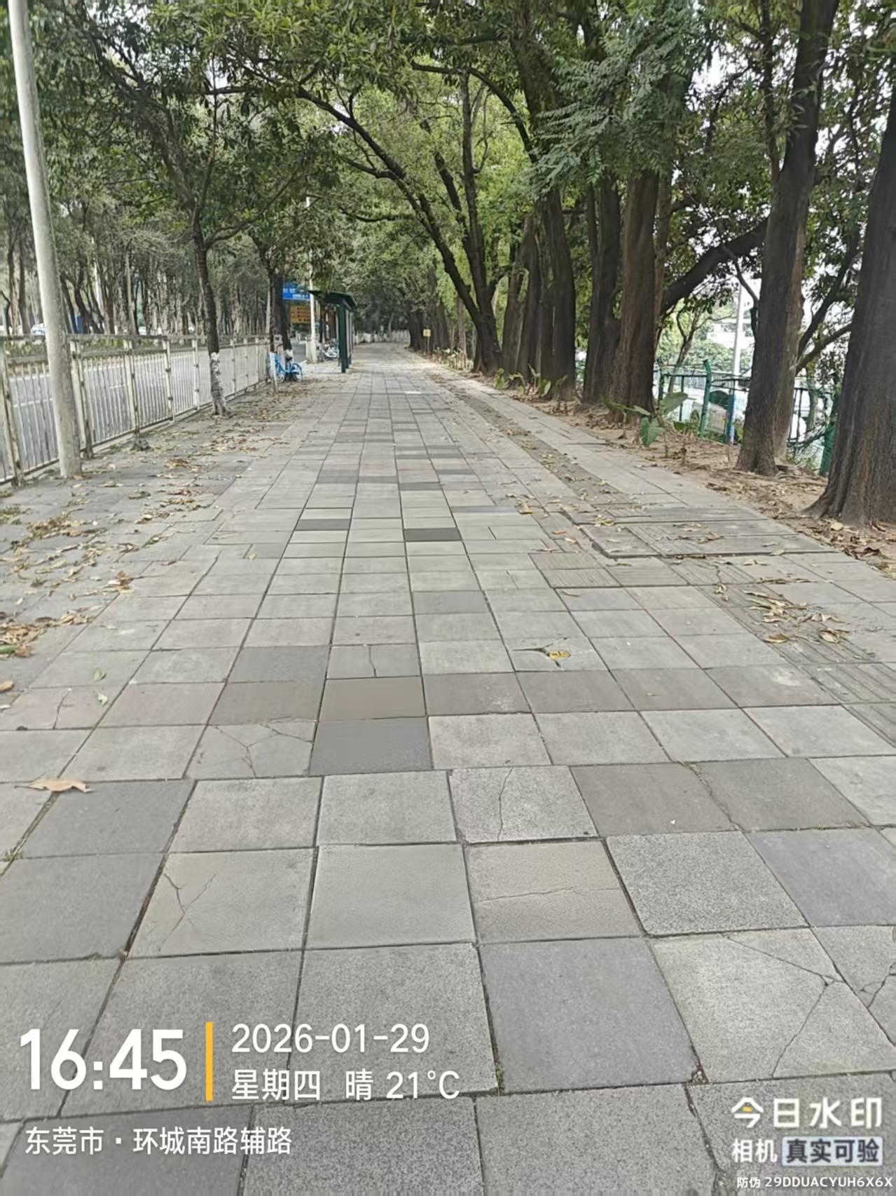 尊敬的市民,您好!您所反映的环城南路光明村公交站周边地板砖破损问题的情况收悉。东莞市市政园林管理中心根据与您电话和案件描述的现场情况,市政园林管理中心立即组织市政设施管养单位进行现场查看,破损地板砖于2026年1月29日完成了修复工作。接下来,市政园林管理中心将持续留意沿线人行道通行情况,保障市民出行安全。关于您反映的环城南路同沙公园至寮步段辅道人行道没有设置路灯问题,由于该道路建设时并没有设置照明设施,东莞市广告灯饰管理中心已将该路段纳入暗区整治范围,力争逐步完善市直管道路照明设施设置。感谢您对我们工作的理解和支持!