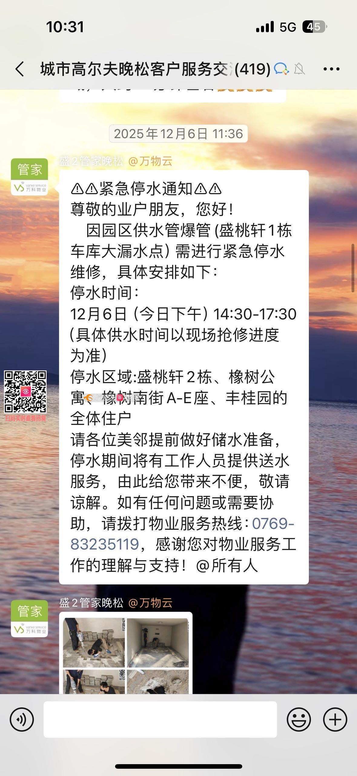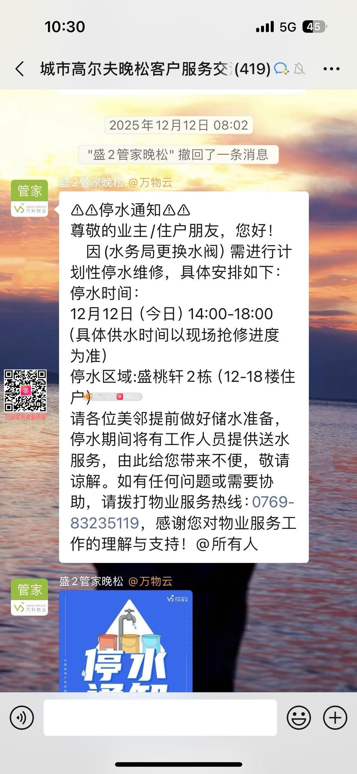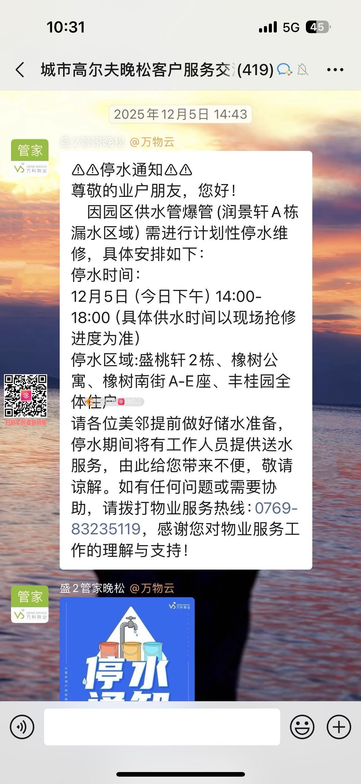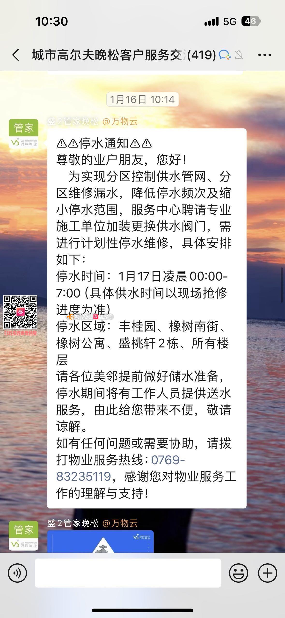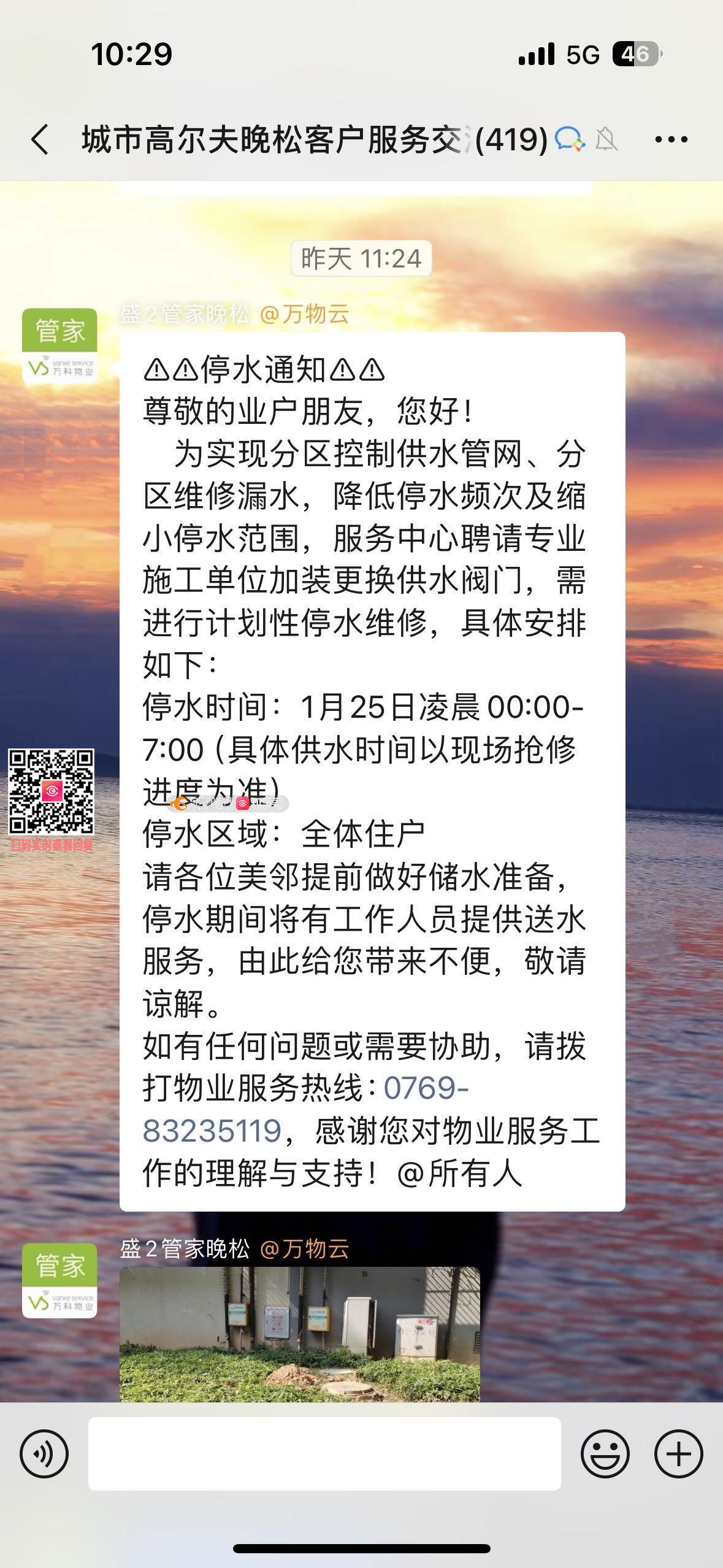 寮步万科城市高尔夫花园小区停水