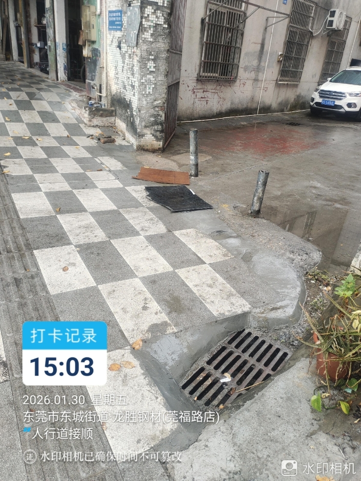 人行横道接驳处没处理好,新铺的砖担心不久就会压烂掉,地址是莞温路434号的巷口处