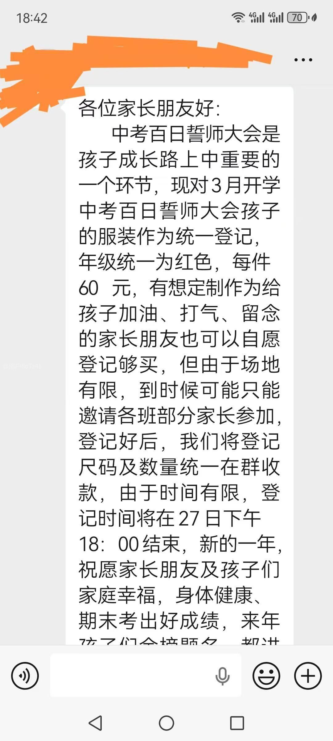 我小孩是东莞东华初级中学初三学生,今年6月中考结束后就毕业了,学校拟在3月份举行中考百日誓师大会,举行大会无可厚非,家长无条件支持,但是学校要求学生重新买一套统一的服装作为大会服装,由家委会在班级群宣布,每件60元。我想这是典型的要把每个家长压榨吃抹干净的行为,东华初中之前每一个统一的活动,基本上都要再重新购买一套服装,小孩不得不购买,不购买的话就会被区别对待。我想,小孩平时在学校都是穿校服,举行什么会议穿校服不行吗?为什么离毕业了还要小孩再买一套服装,这就是赤裸裸的学校勾结家委会吃抹家长,严重的腐败行为。请求教育部门管管这些私立学校。