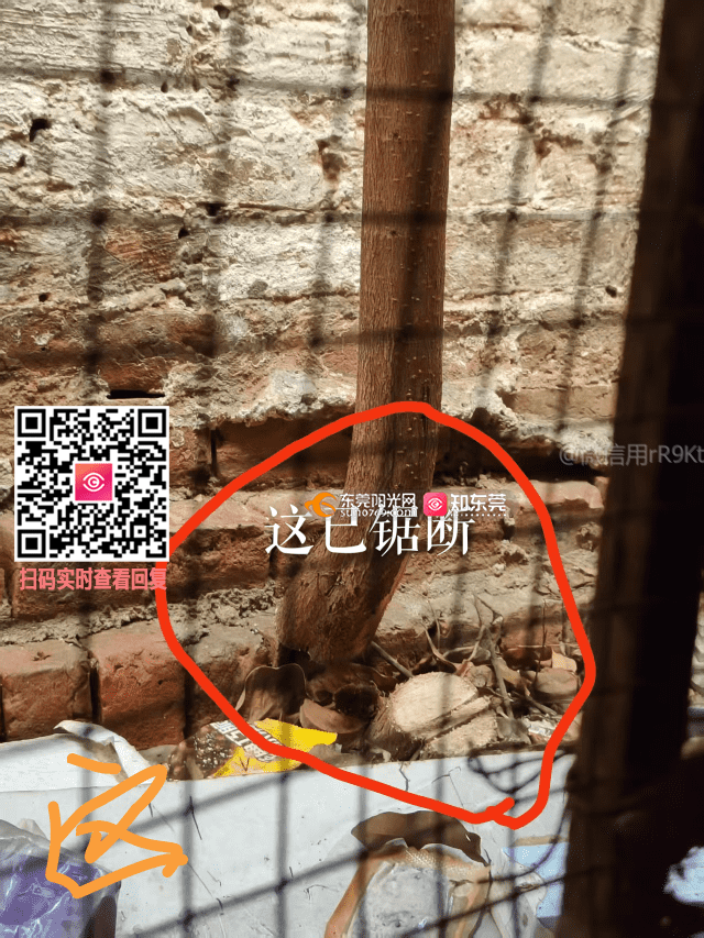 梅园路三巷6号房屋后面公共小巷锯断整颗树没丢掉,己投诉一个多月,环保根本没实地检查弄虚作假信息说围院,我家根本没围院是公共用地环保理应丢掉树,政府该到实地检查督促环保丢掉整颗树,还居民健康生活。