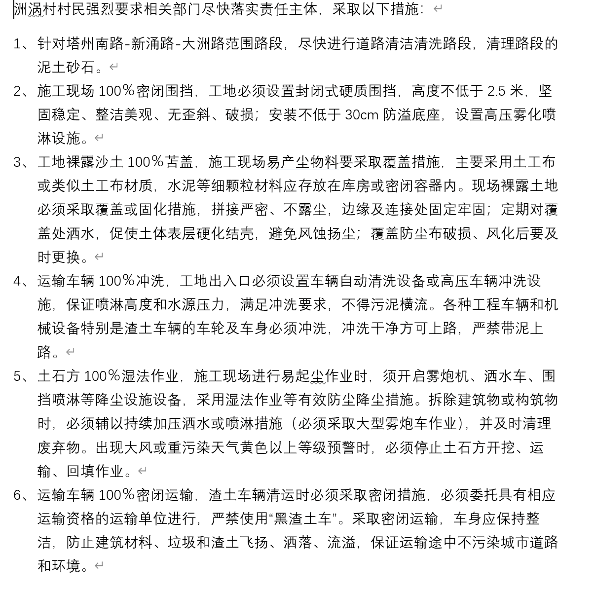 洲涡村村民要求相关部门尽快采取以下措施,详细要求,如图所示。