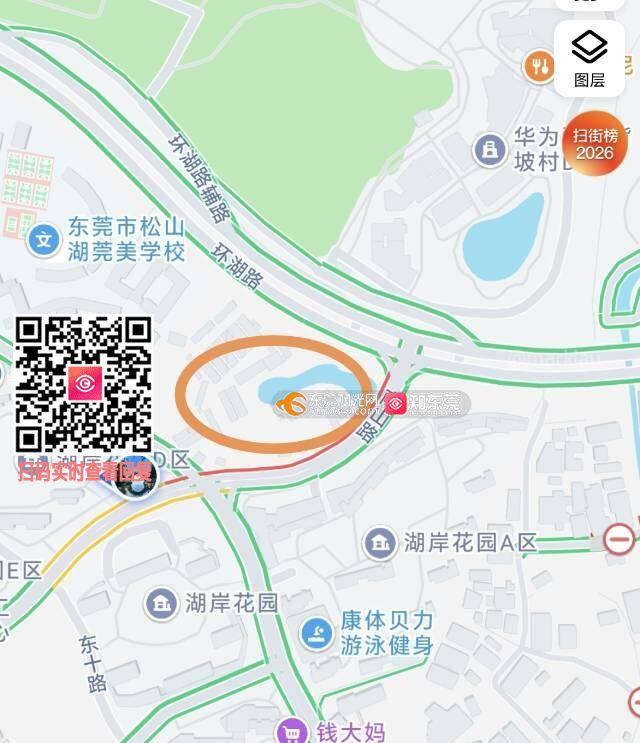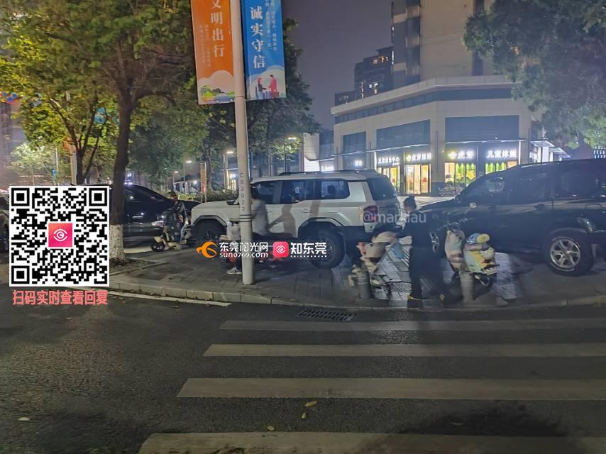 花园莞美学校旁边露天停车场停用导致湖岸交通拥堵