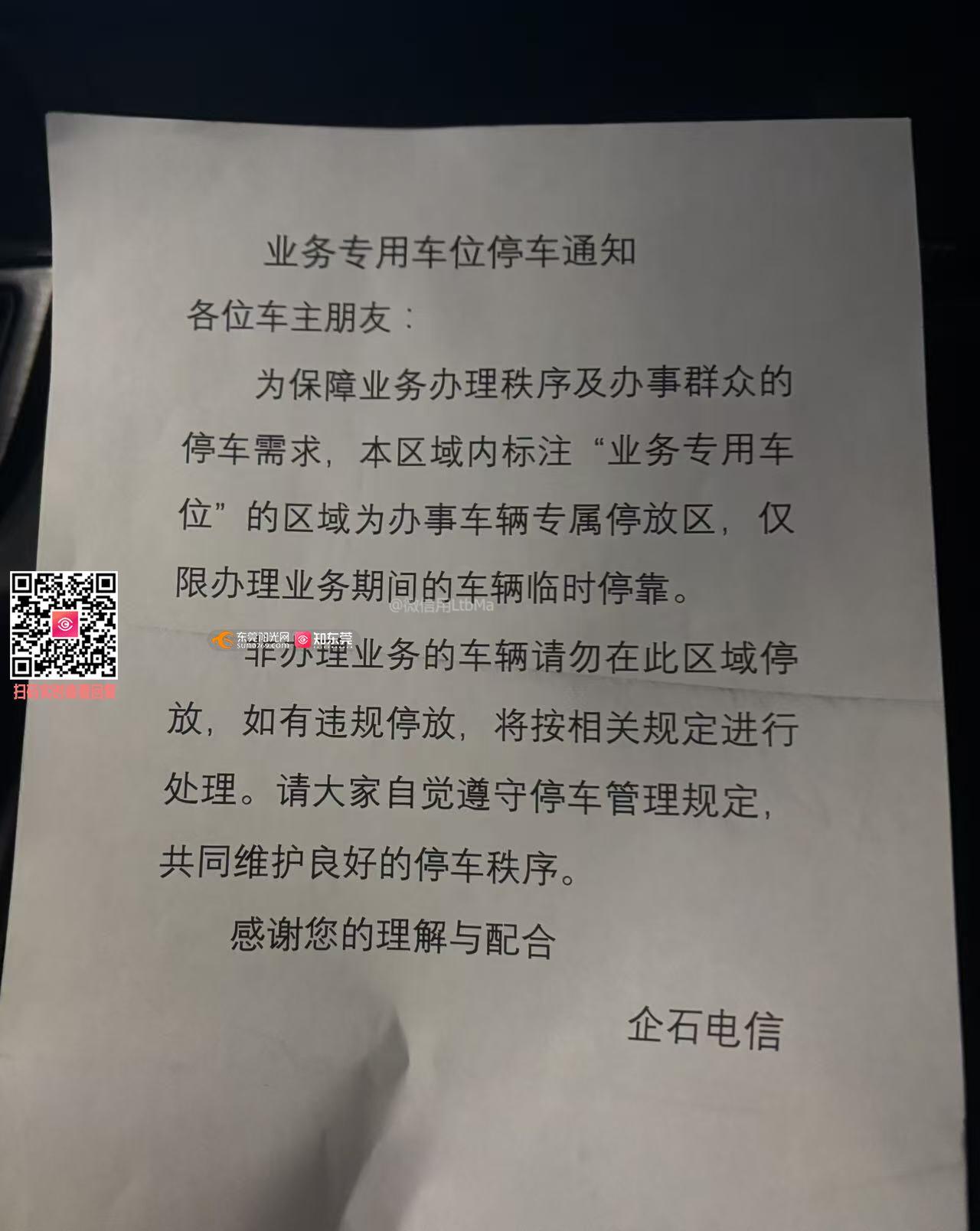 1月19日,企石镇霞朗村电信营业厅强行霸占车位,经12345投诉,相关部门介入责令整改处理后,1月20日继续摆放雪糕桶霸占车位;1月21号继续经12345举报后到现在都没有任何处理结果!目前电信营业厅甚至安排保安在公共车位附近进行监视,不让普通车辆在公共车位停车,只让去电信营业厅办业务的车辆才能停!请问相关部门是否走过场,是否没有严格处理这类事件?