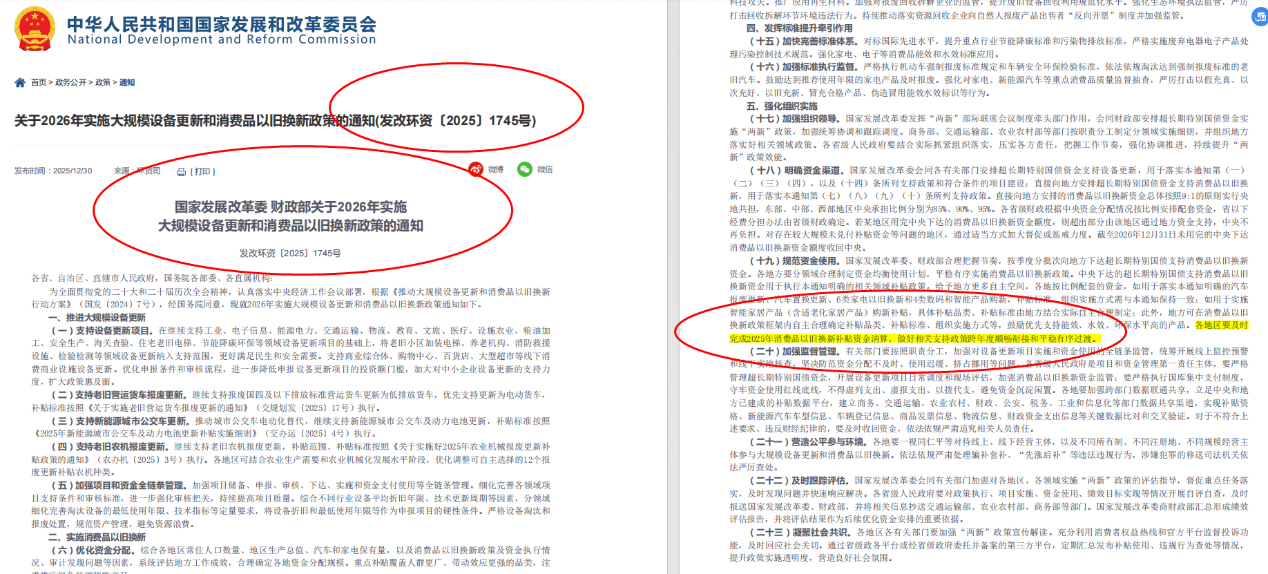 发改委明文通知,说各地区要做好政策跨年度顺畅衔接和平稳有序过渡【具体文号(发改环资〔2025〕1745号)】,那么,为什么东莞就没有2025年汽车报废补贴的衔接政策? 明明是国家要求做的,为什么东莞不去做,不执行国家的政策要求?