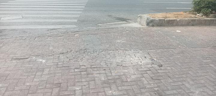 石排石兴市场红绿灯路口左边人行道有一处破损