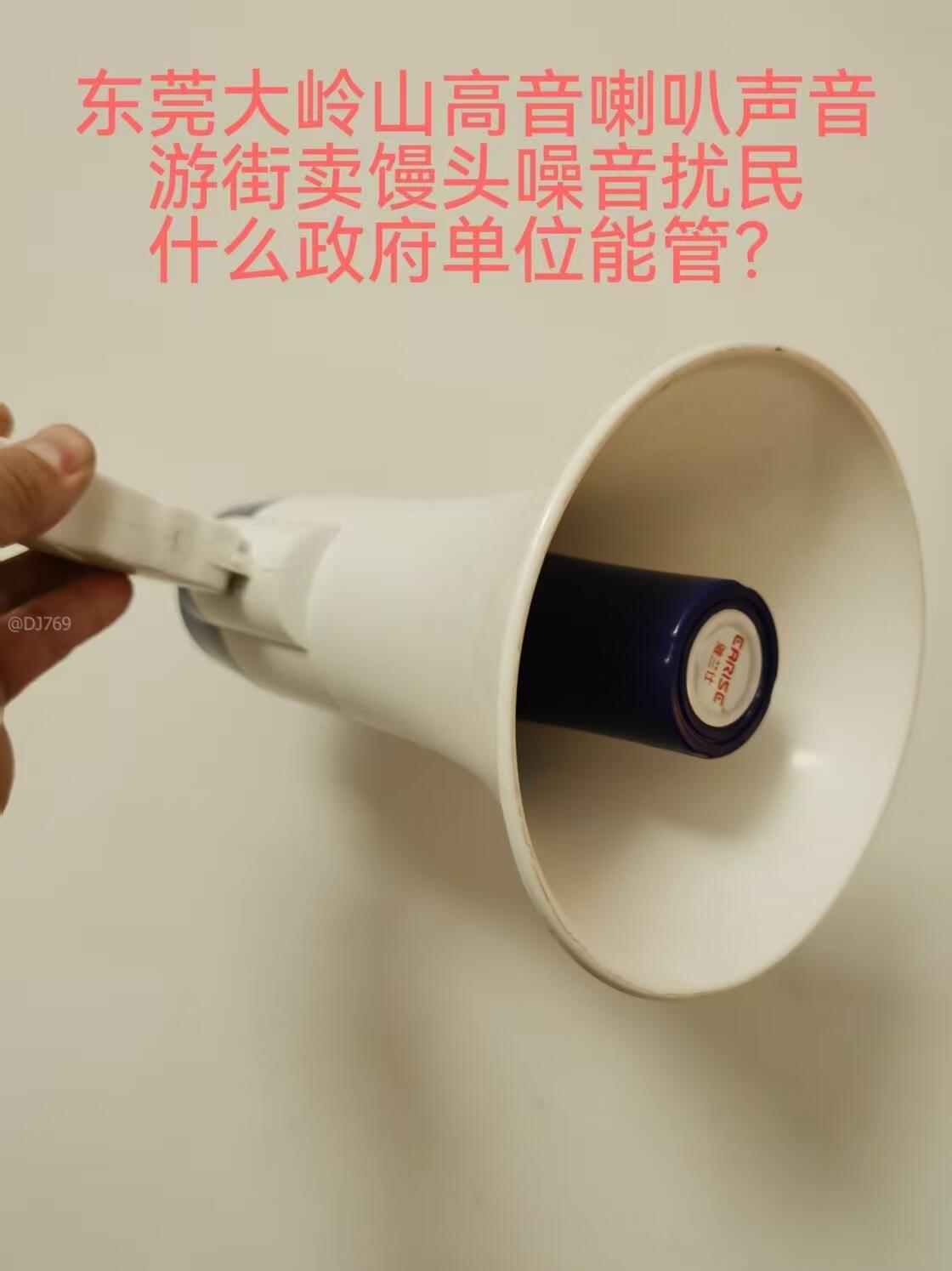 东莞市大岭山镇玉兰街12号对面,每天下午15点左右,17点左右,19:30分左右,走鬼多年用高音喇叭,在玉兰街,教育路等地方游走兜售馒头!噪音严重扰民,搞得大岭山镇,城市不像城市,农村不像农村。镇街真对不起拥有三处地铁站的城镇化格局,城市生活环境体验感差,浪费了大岭山镇优越的地理环境!走鬼制造噪音,向城市管理单位投诉多年,管理单位工作人员毫无履职能力体现!