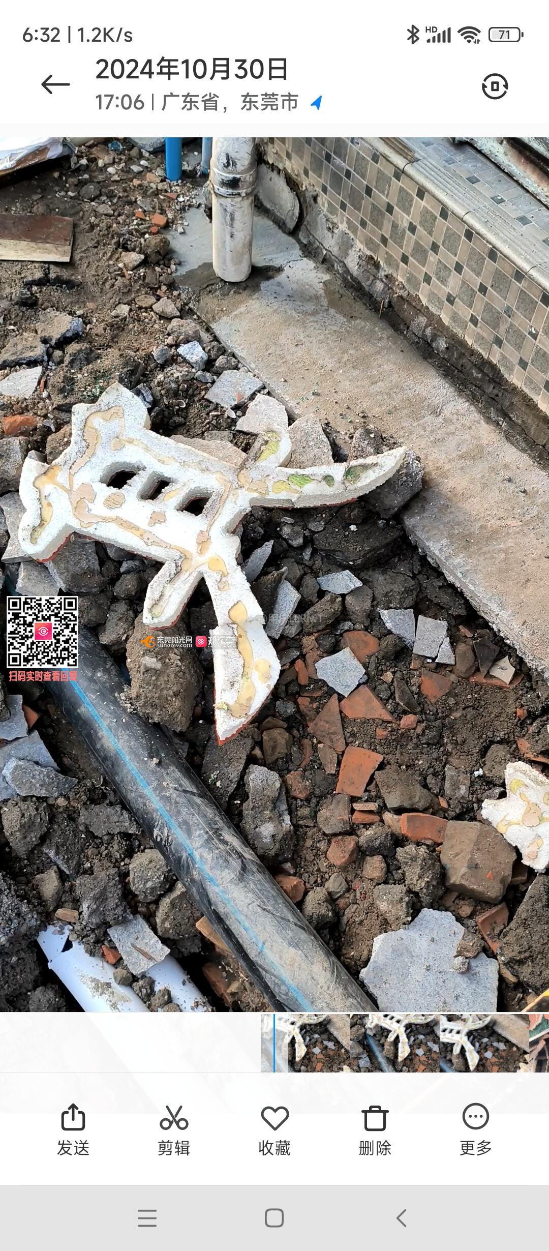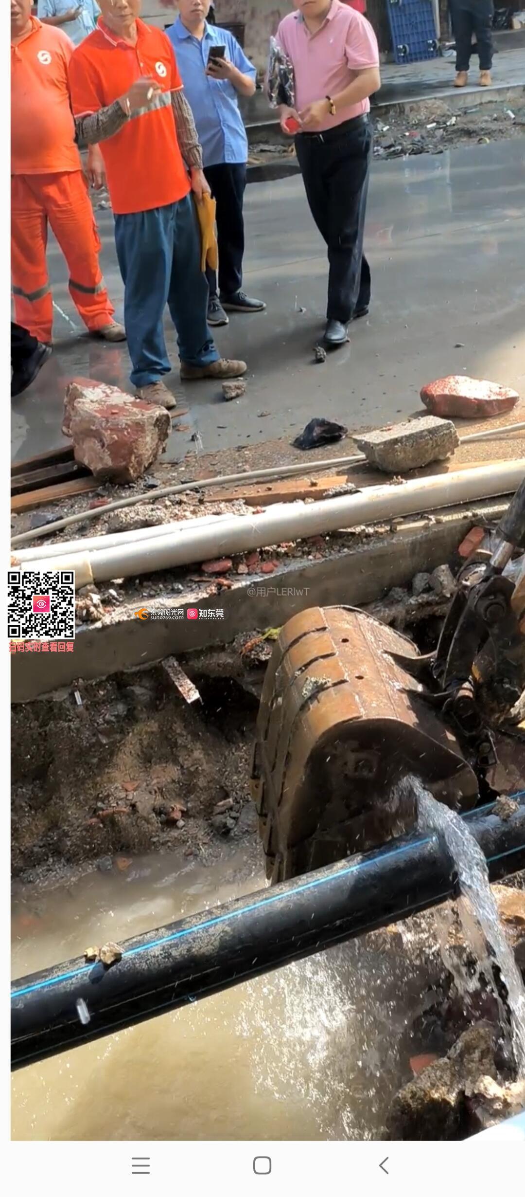 2024年10月30日中午时段,东莞记忆施工挖掘机挖爆阮涌路71号,家门前大供水管,导致我家高压水冲击进水浸家,损坏卷闸门,财产损坏,多次投诉至东莞记忆指挥部,至今无解决!