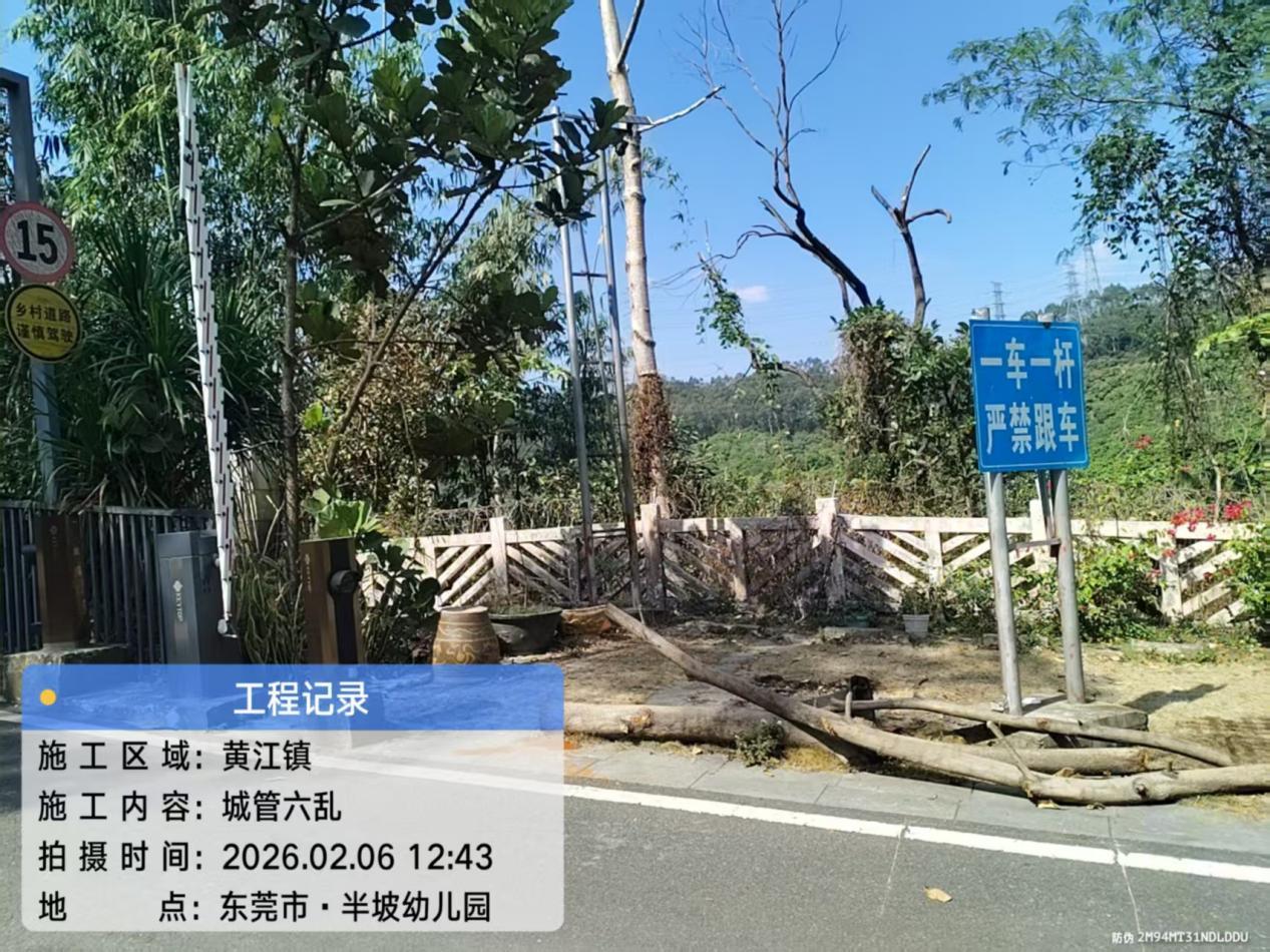 尊敬的市民,您好!您反映的问题已收悉,黄江城管分局工作人员于2026年2月6日12时43分与您联系,并对诉求进行办理,现调查情况如下: 现场核实位于黄江镇长龙社区流洞2路39号半坡家园小区大门处铁皮广告牌的问题,目前已拆除完毕。接下来,黄江城管分局将继续加强巡查力度。 如发现问题,请联系东莞市城市管理和综合执法局黄江分局,联系电话:83362955,感谢您对城市管理工作的监督与支持! 东莞市城市管理和综合执法局黄江分局 2026年2月6日