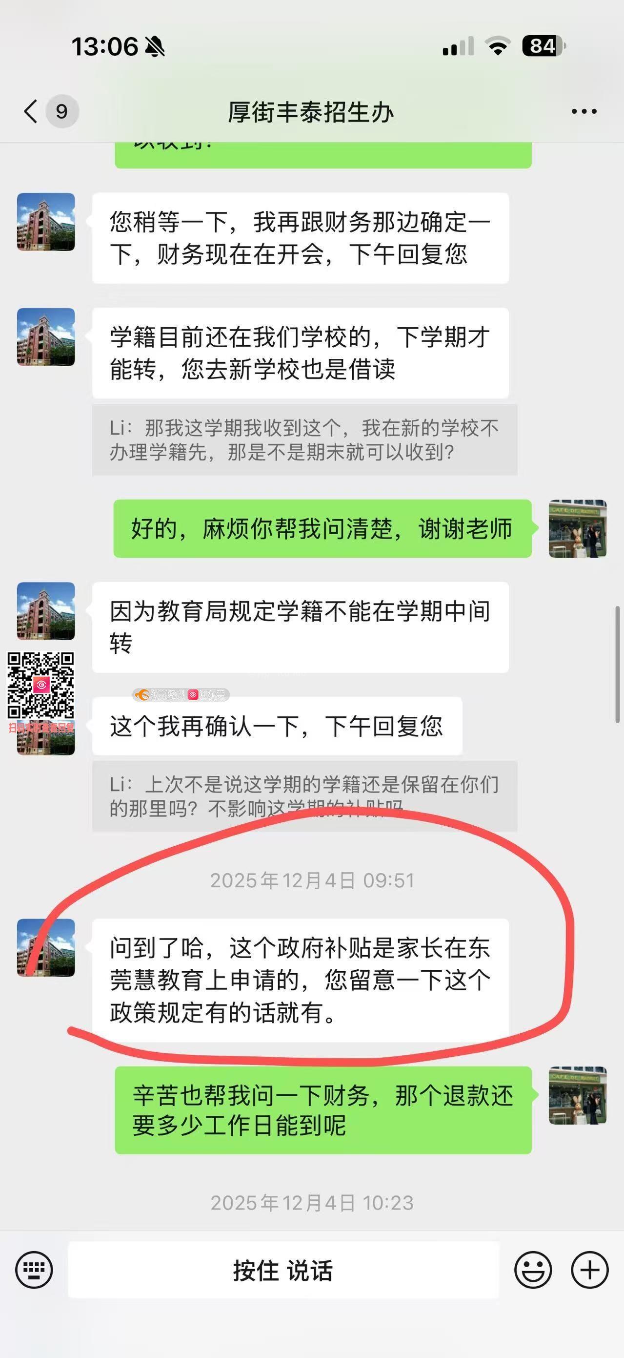 本人为该校一年级01班学生家长,孩子2026学期民办学位补贴已通过东莞市教育部门审核,因多种原因办理转学后,学校以“转学”为由截留该学期补贴,多次沟通后仍拒绝发放,违反《东莞市民办学校学位补贴实施办法》相关规定,损害学生合法权益。 诉求:1. 责令厚街丰泰外国语学校3个工作日内(截止2026年2月5日)将补贴发放至指定账户;2. 相关部门书面反馈督办过程与处理结果;