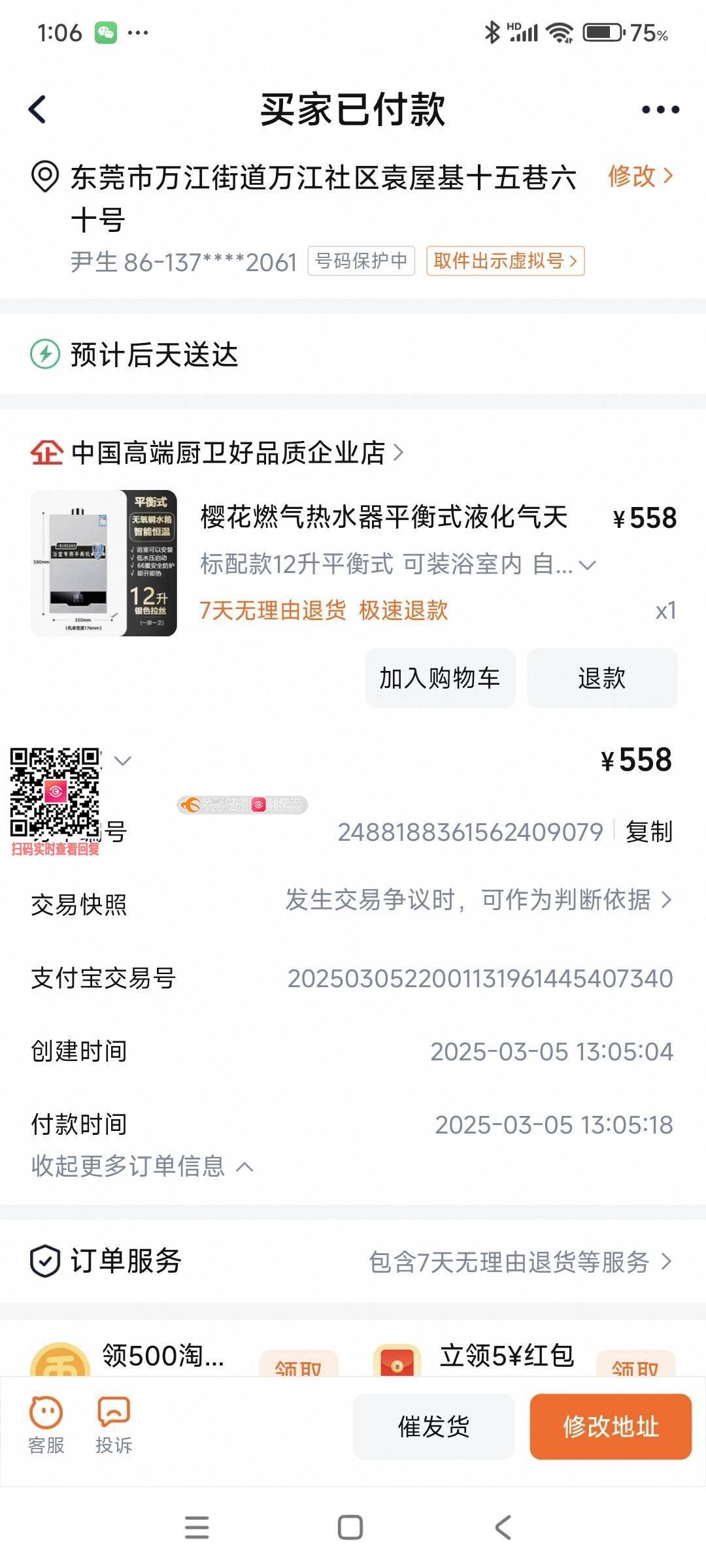 本人2025年3月5日在淘宝买的樱花燃气热水器,岀现故障,无法使用,而樱花保修卡上电话是假的,无法接通,无法报修厂家,而淘宝卖家不负责任,没有联系厂家维修,在保修期内厂家应该给我购买的商品保修,而厂家和卖家这种不负责任行为,恳请有关部门帮忙处理。