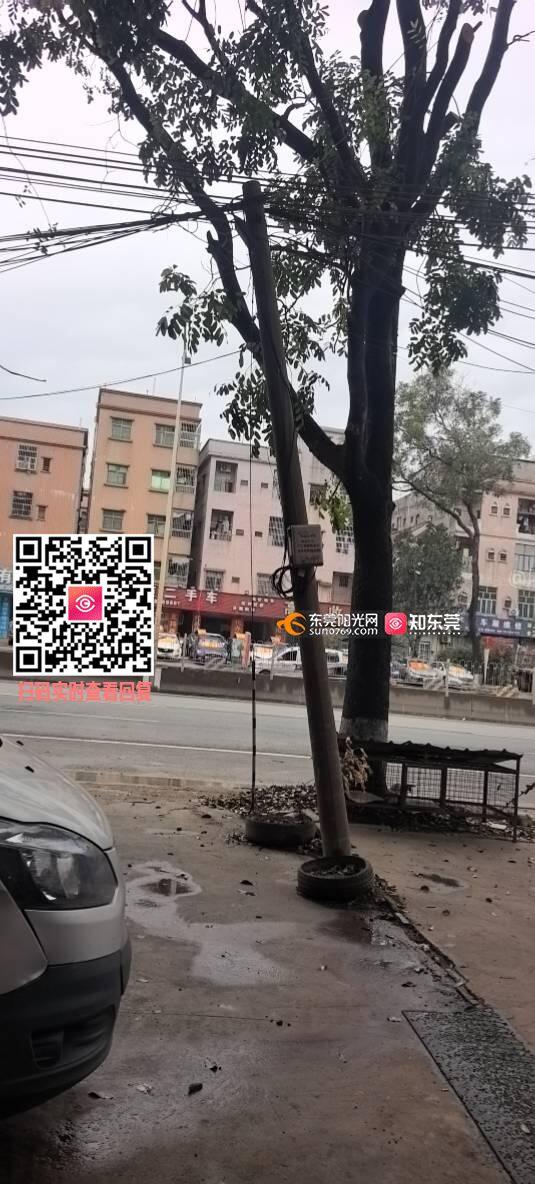 电线杆断开,倾斜无人处理,打了移动公司,派出所电话,几天都无人处理
