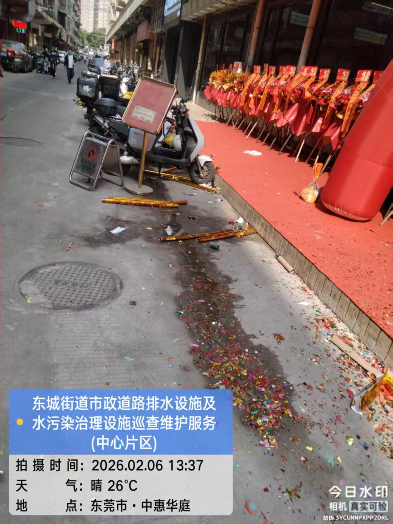 你好。我是中惠华庭B区的物业管理,由于在2026年一月,对东城涡岭风景街中惠华庭B区1-20号铺 进行 下水道修复,修完之后并没有修平,只要每次下一点小雨就会 导致路面大面积积水。望解决。 地址:东莞市东城涡岭风景街中惠华庭B区街10-20号铺 道路。