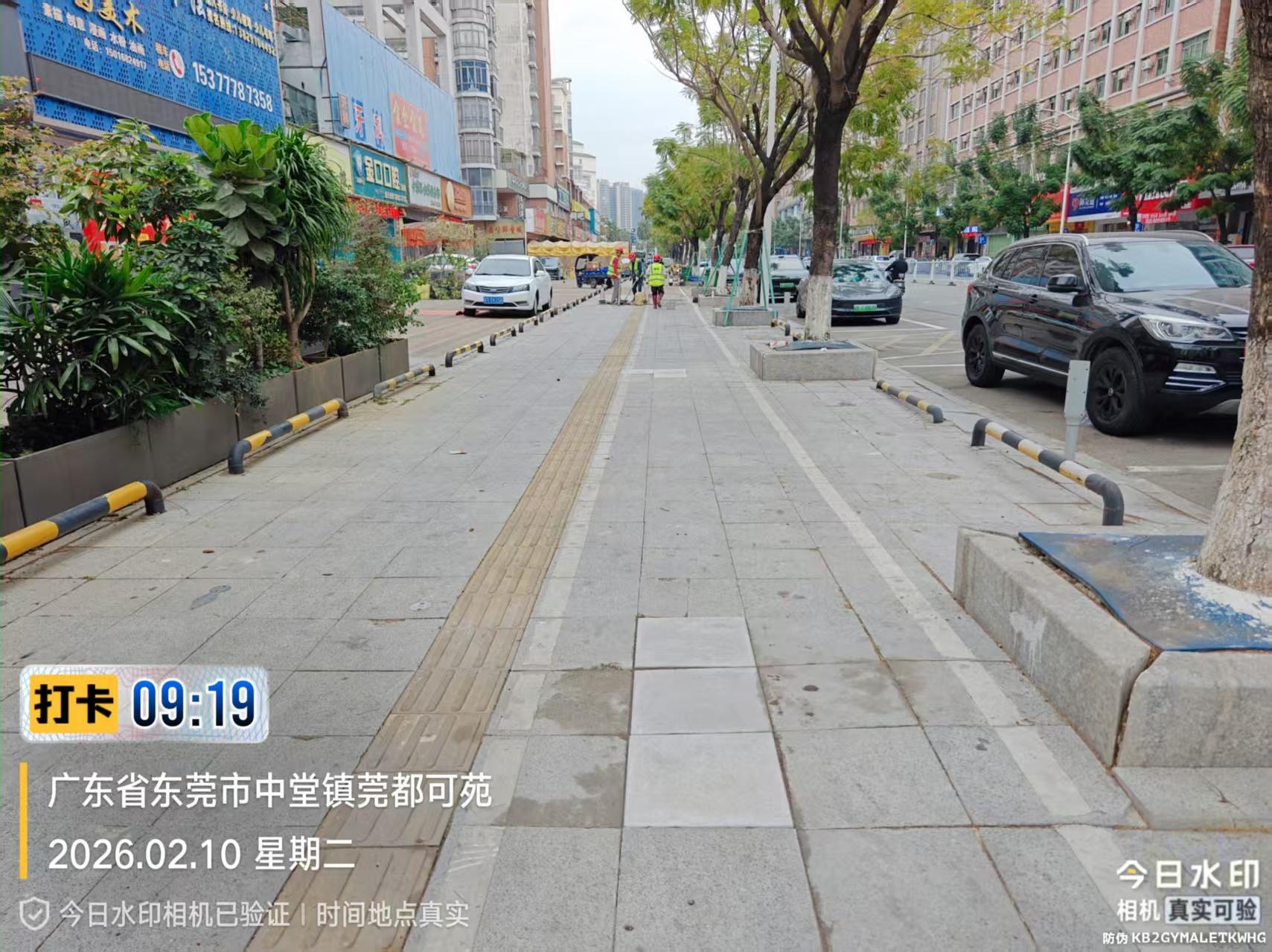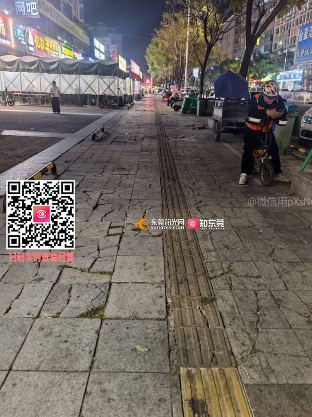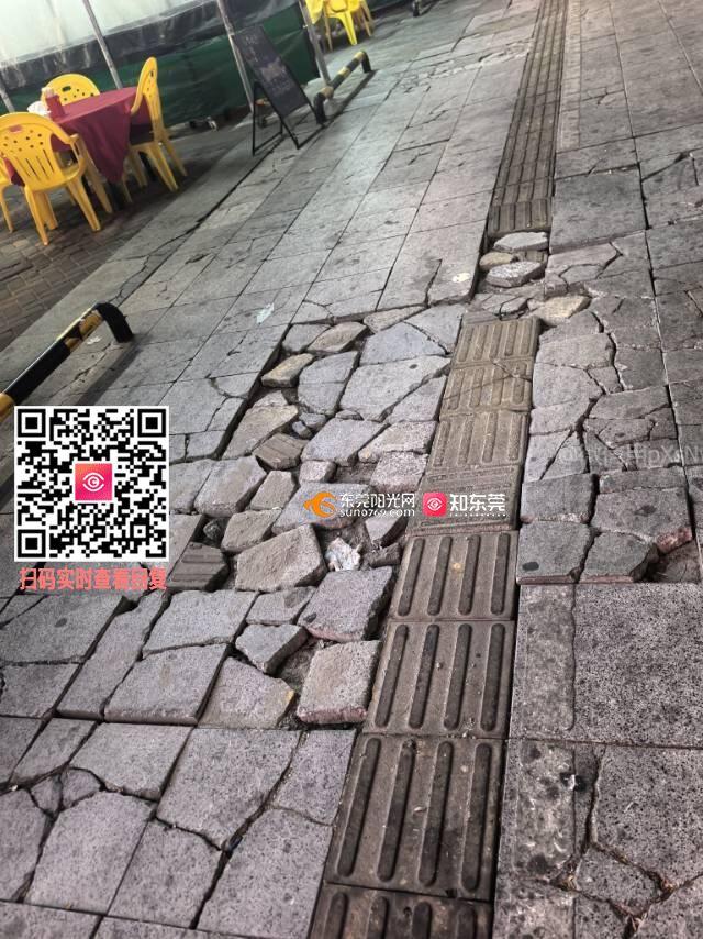 尊敬的市民,您好!您反映的问题已收悉,现回复如下:2026年2月2日我中心工作人员到现场勘查后安排人员跟进,在2月10日施工人员对破损严重区域进行局部修复。涉及大排档这段人行道暂未修复,该路段已纳入升级改造路段,年后再进行统一修复。后续我中心将持续跟进。如有疑问,请联系东莞市中堂镇公用事业服务中心,联系电话:88122808。感谢您对我们工作的理解和支持!