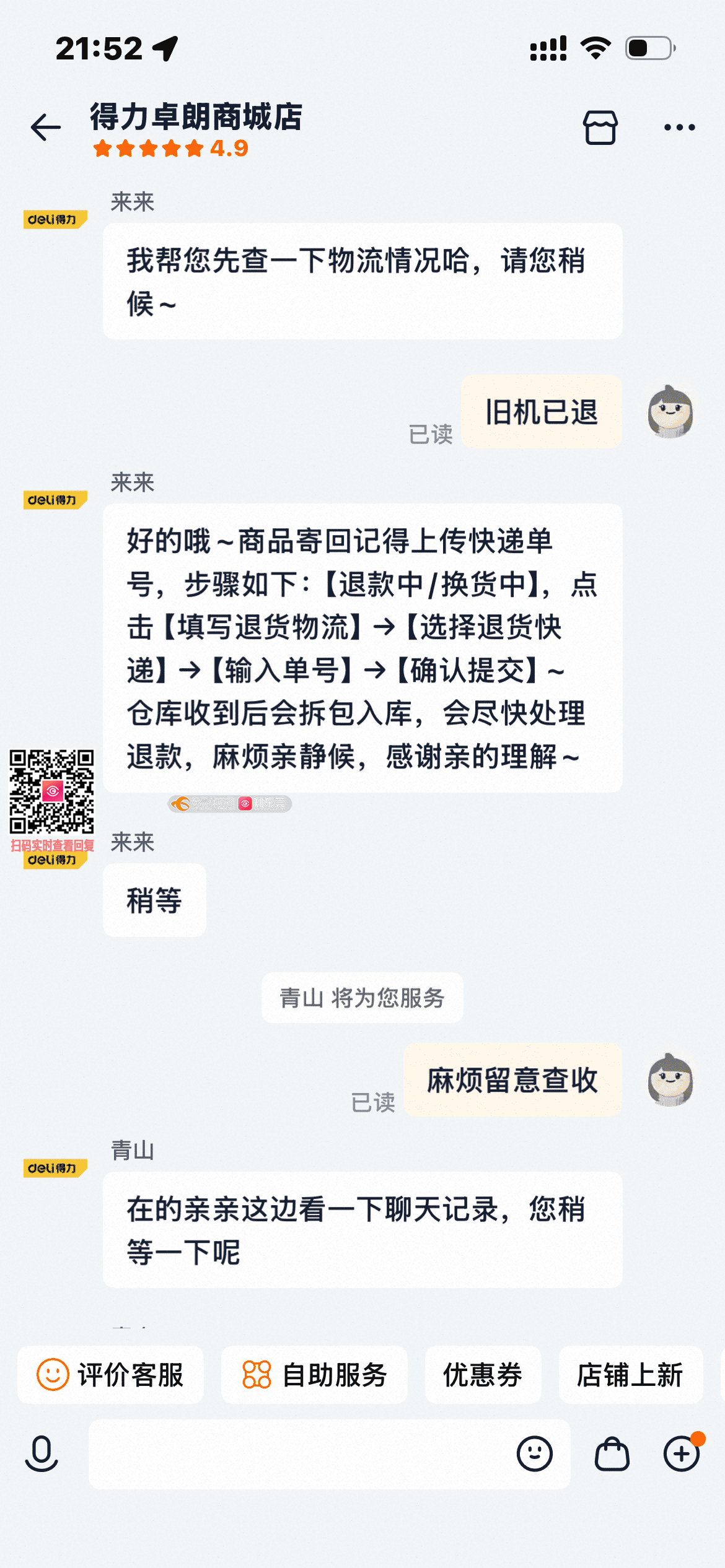 2025年12月28日寄淘宝退换件,2026年1月3日后看不到物流新信息,6日后便再也没有显示然后物流信息,后来多次联系人工客服,有几次有不同的人打电话过来说找到货物了称要退回来,但是过去两个星期依然没有任何消息,后又人工投诉多次,每次都说安排人联系我,还同意赔付给我,但是依然没有任何进展