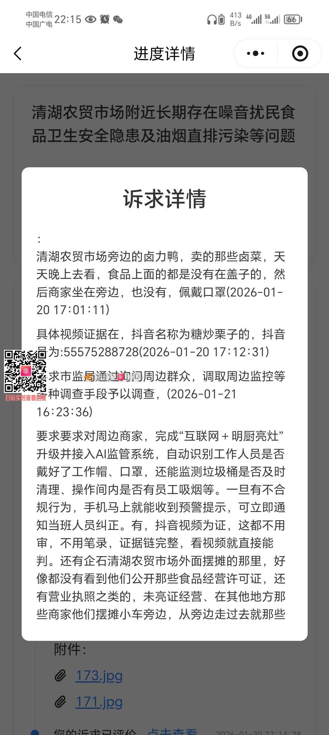 清湖农贸市场外长期存在的噪音扰民食品卫生安全隐患及油烟直排污染等问题